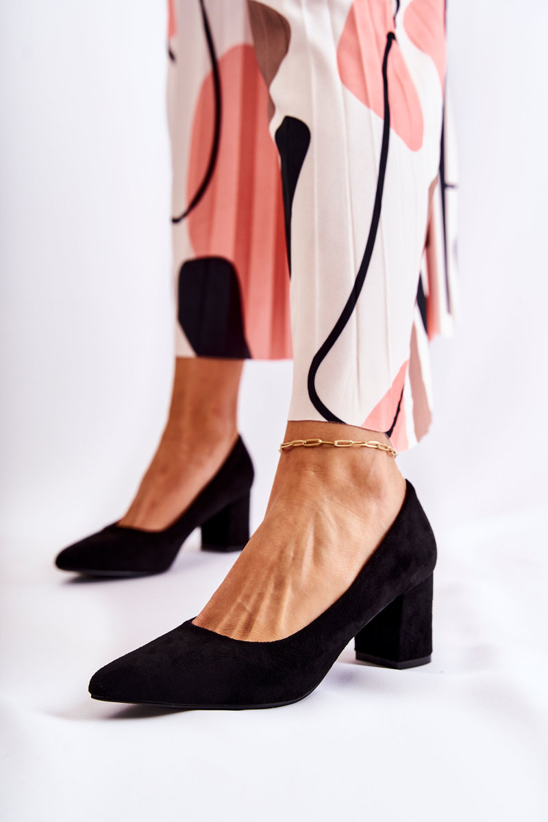 Klasyczne Czółenka Zamszowe Na Słupku Czarne Lency