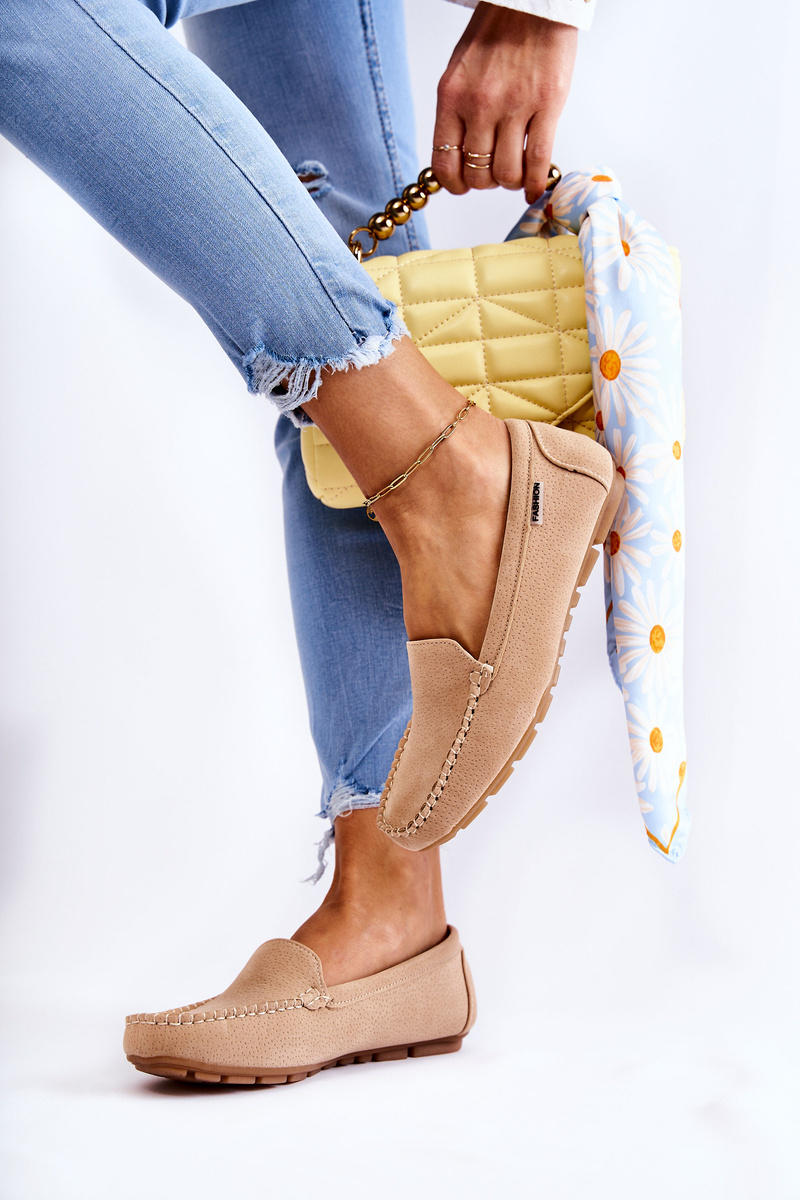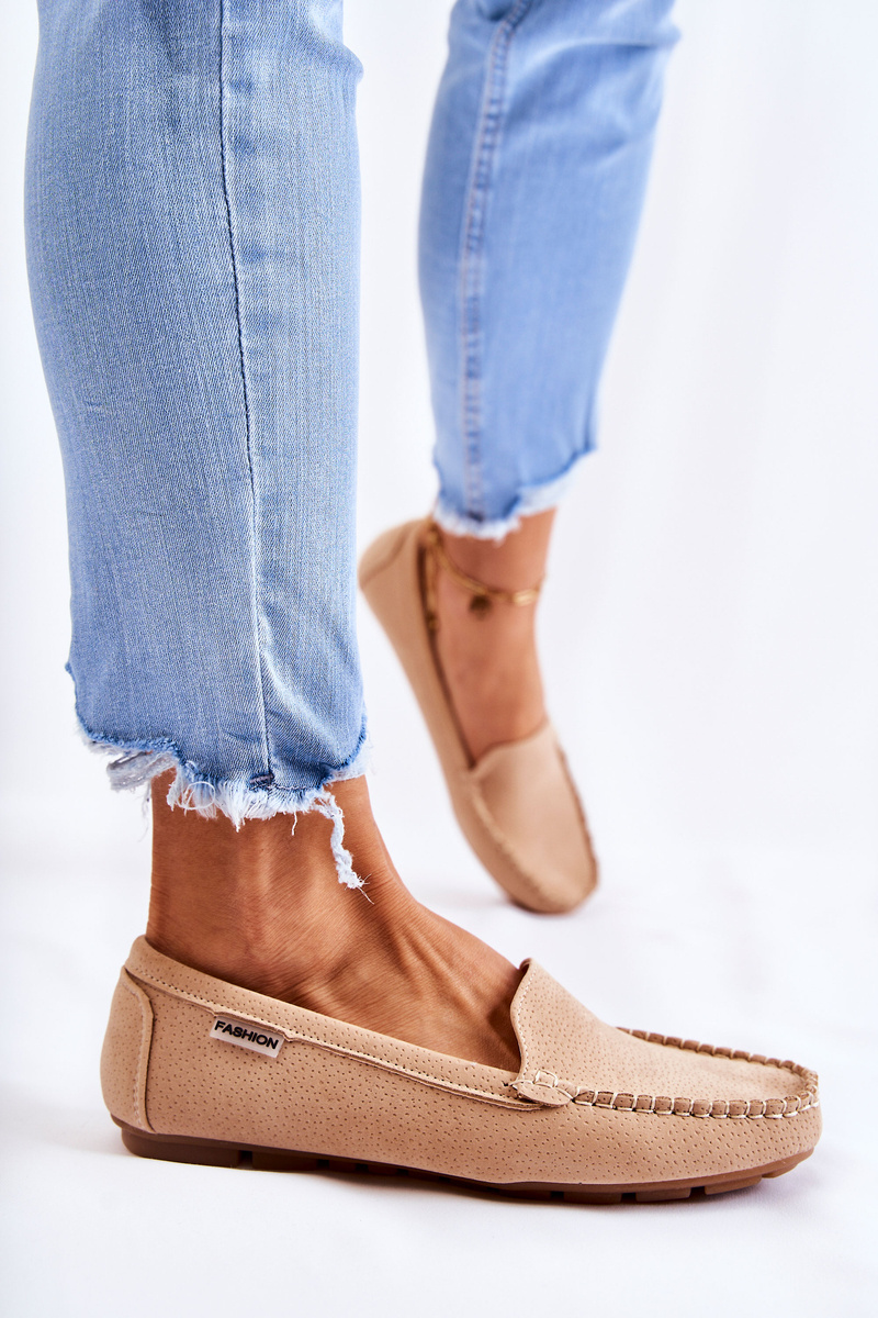 Zamszowe Mokasyny Damskie Beżowe Millare