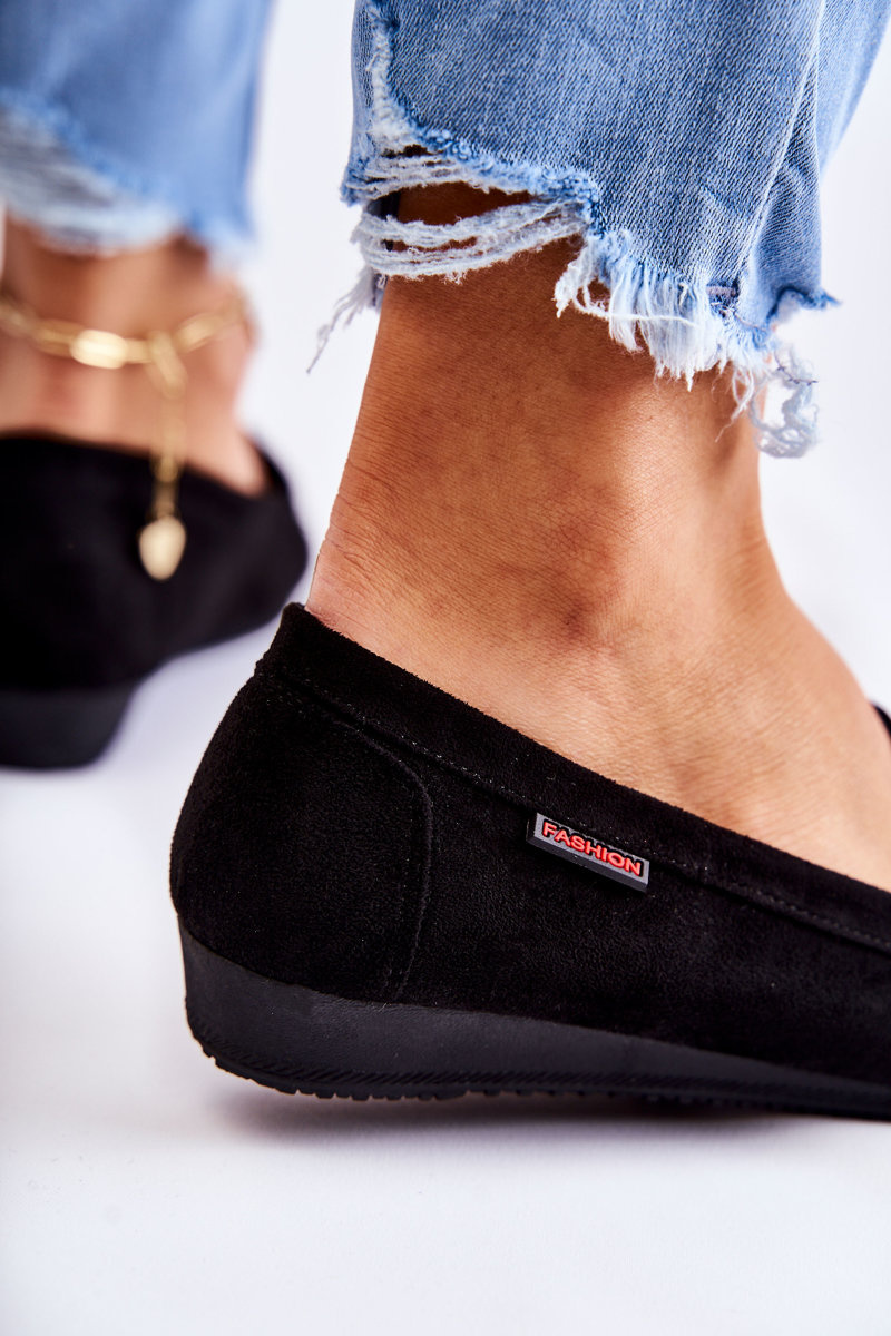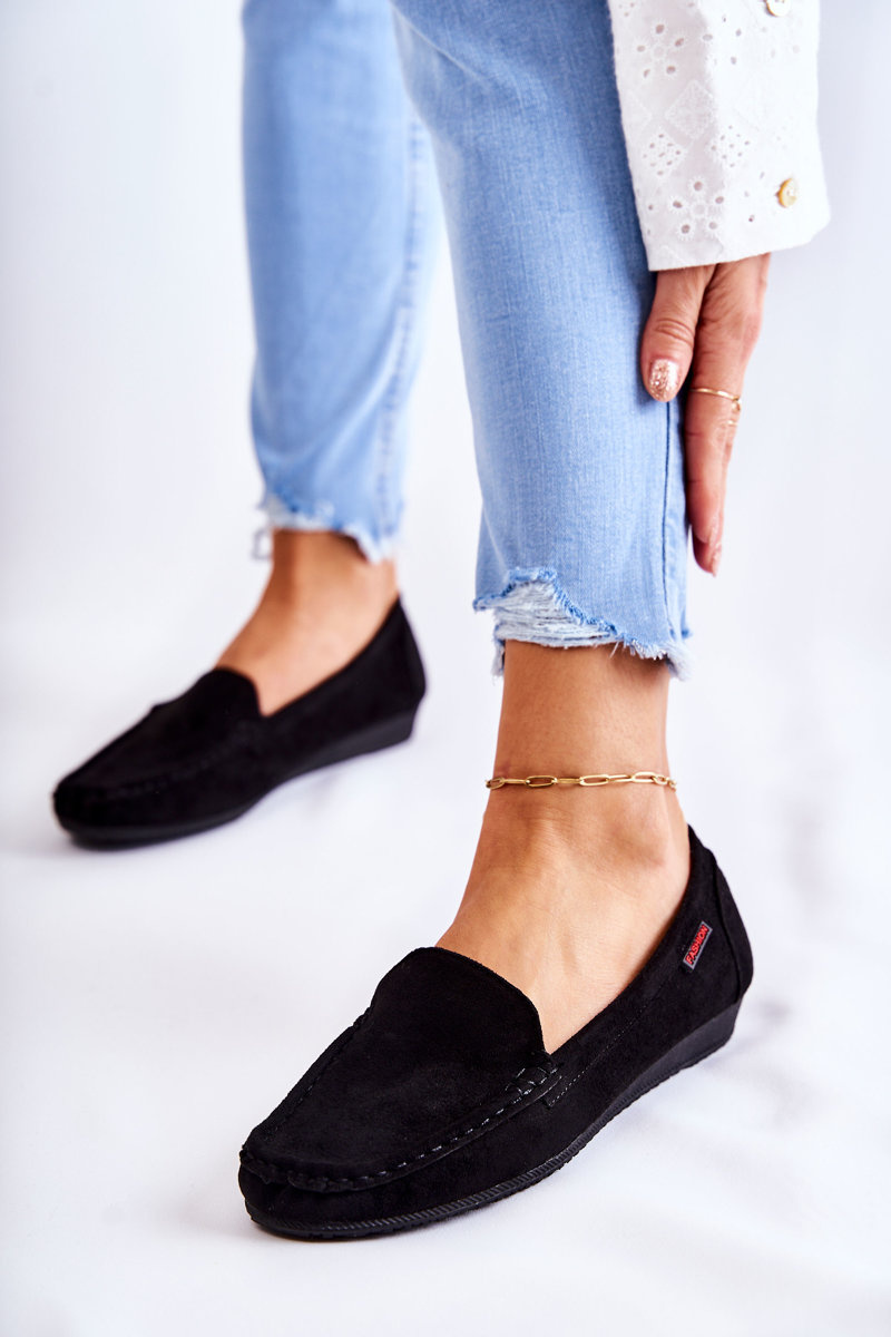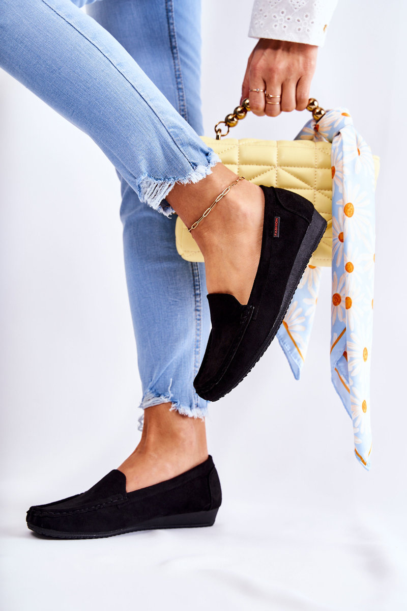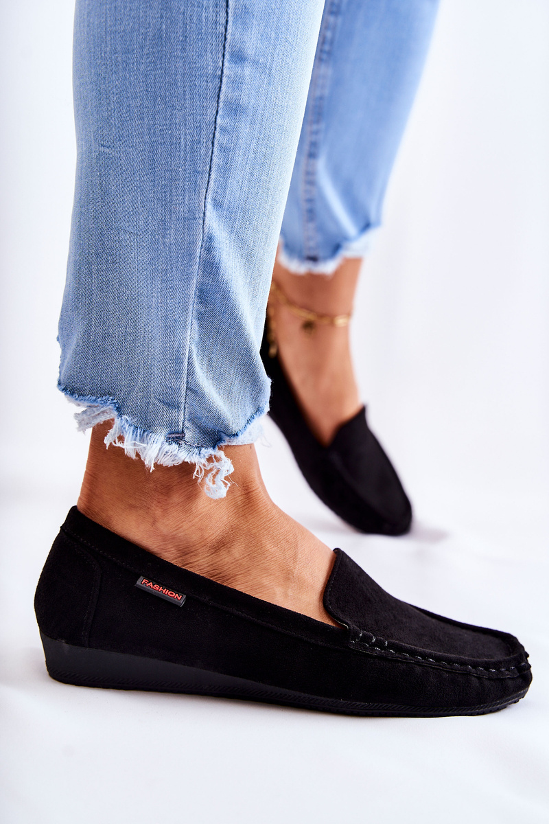 Damskie Zamszowe Mokasyny Na Koturnie Czarne La Cava