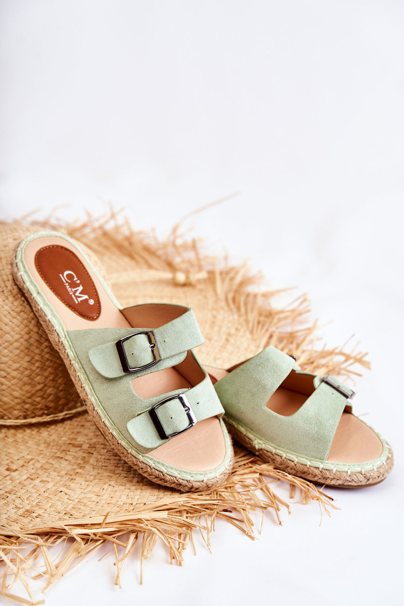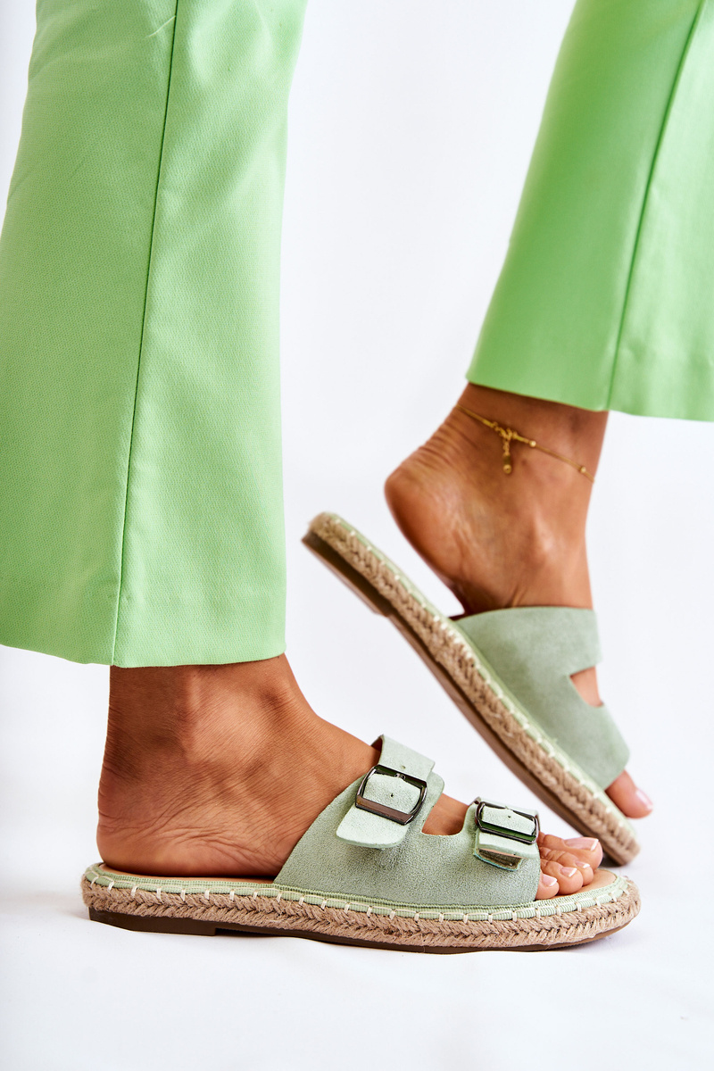Klasyczne Zamszowe Klapki Damskie Zielone Casilda