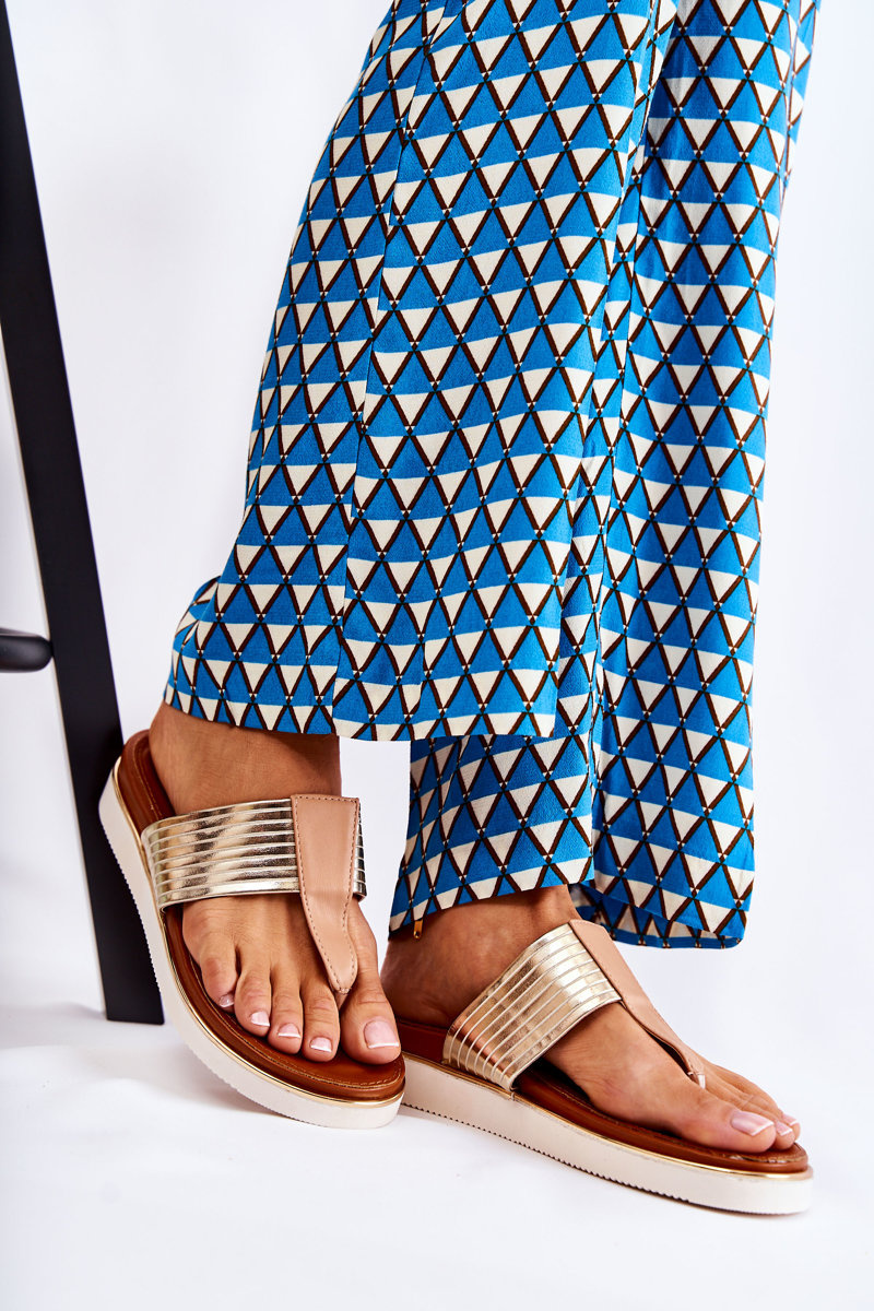 Damskie Klapki Japonki Na Platformie Beżowo-Złote Morissa