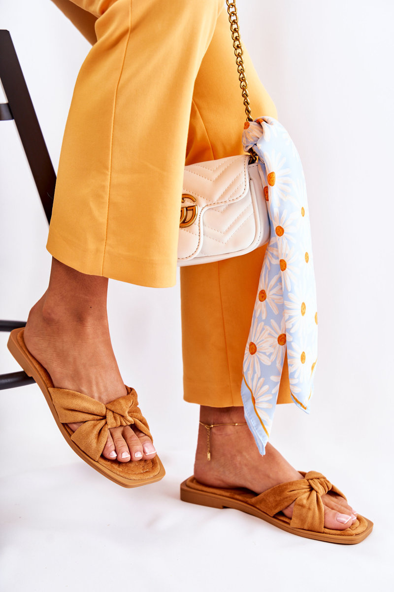 Damskie Modne Zamszowe Klapki Camel Lorrie