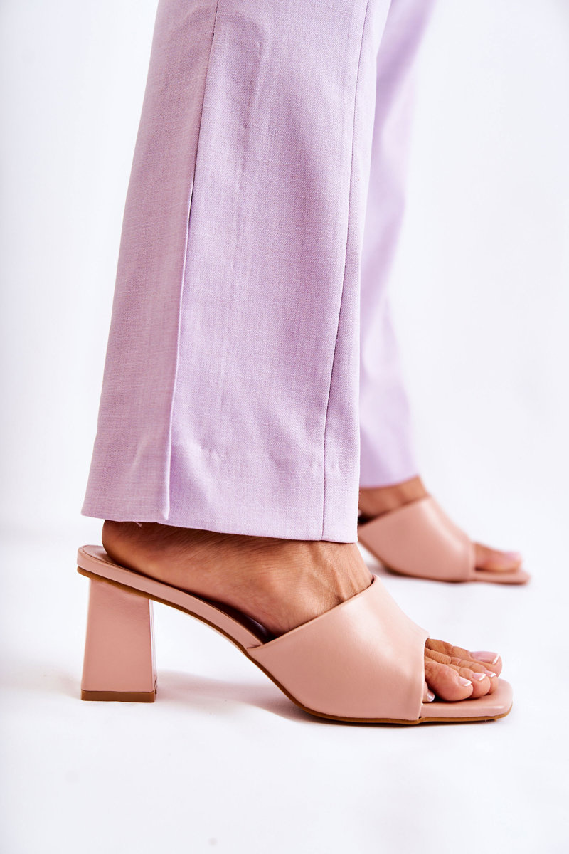 Skórzane Klasyczne Klapki Na Obcasie Nude Talena