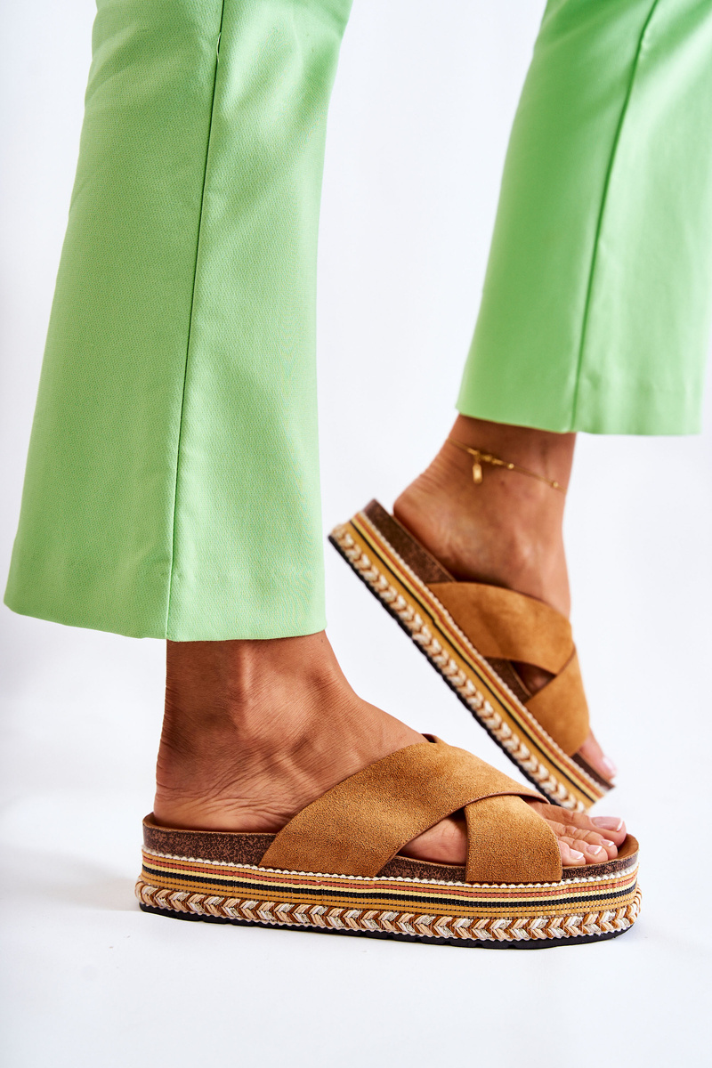 Damskie Zamszowe Klapki Na Platformie Camel Jossie