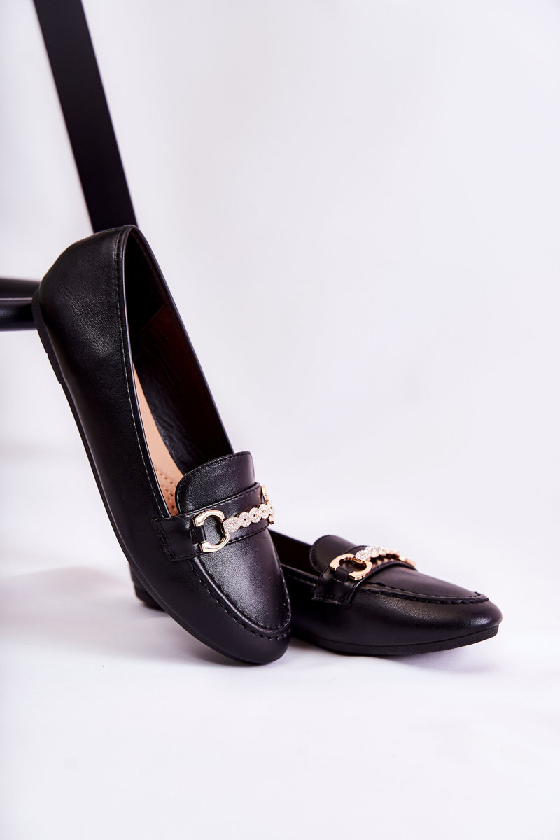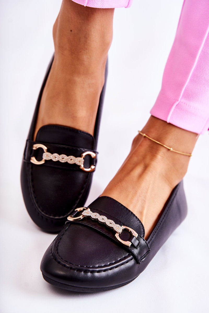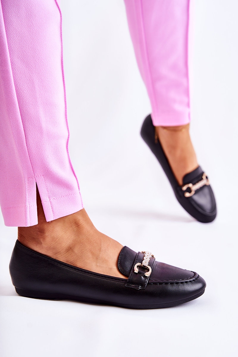 Eleganckie mokasyny osadzone na płaskim obcasie. Zostały wykonane z wysokiej jakości eko skóry z dbałością o każdy detal. Miękka wkładka z perforacją zadba o Twój komfort podczas użytkowania. Mokasyny sprawdzą się w wielu stylizacjach. Na przodzie znajduje się ozdobny element z dżetami imitującymi cyrkonie. Nosek zaokrąglony. Przy wyborze rozmiaru prosimy sugerować się tabelą rozmiarów.