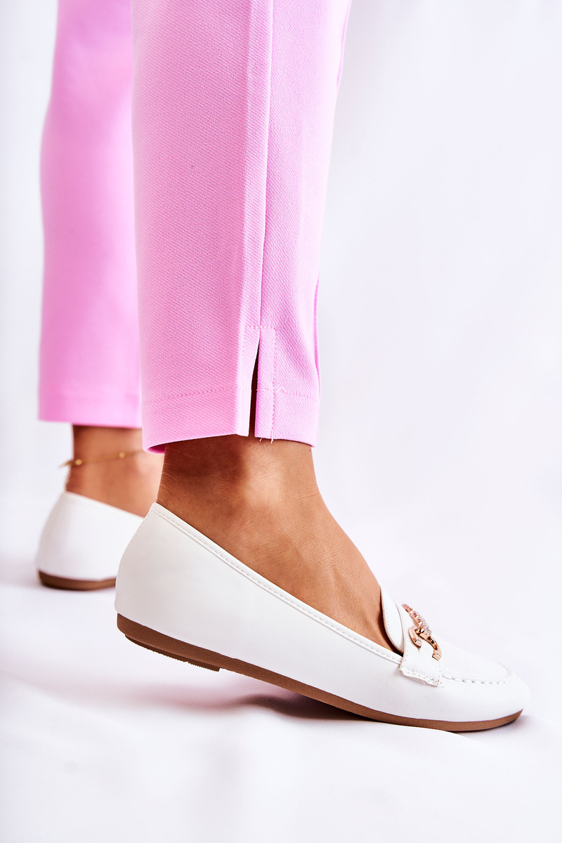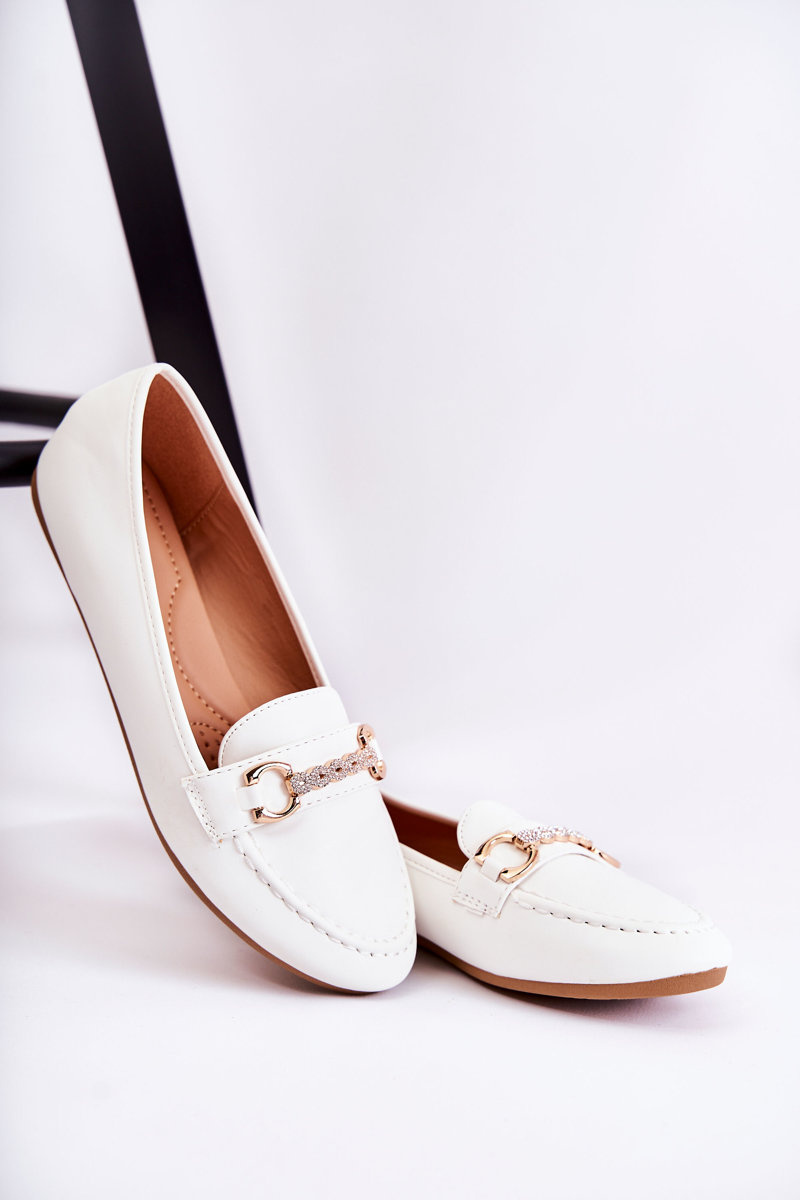 Eleganckie mokasyny osadzone na płaskim obcasie. Zostały wykonane z wysokiej jakości eko skóry z dbałością o każdy detal. Miękka wkładka z perforacją zadba o Twój komfort podczas użytkowania. Mokasyny sprawdzą się w wielu stylizacjach. Na przodzie znajduje się ozdobny element z dżetami imitującymi cyrkonie. Nosek zaokrąglony. Przy wyborze rozmiaru prosimy sugerować się tabelą rozmiarów.