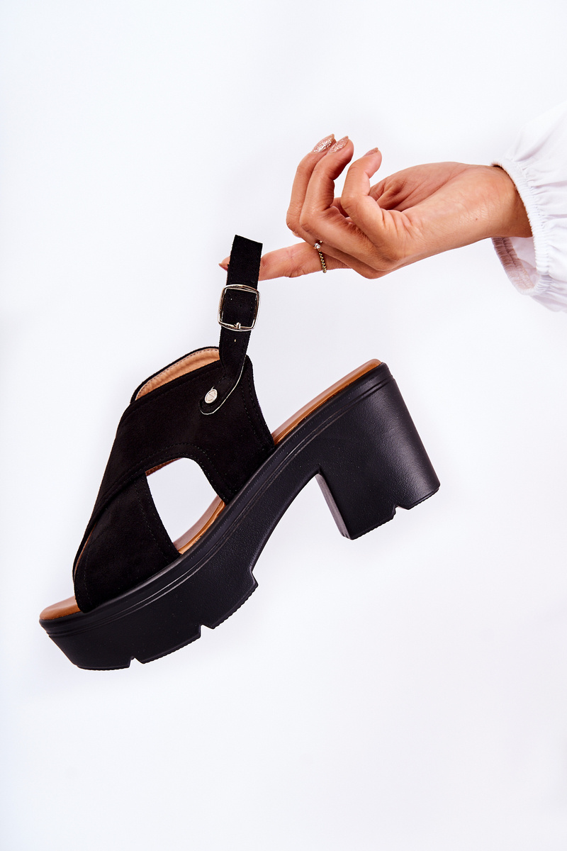 Zamszowe Sandały Na Obcasie Czarne Arlena