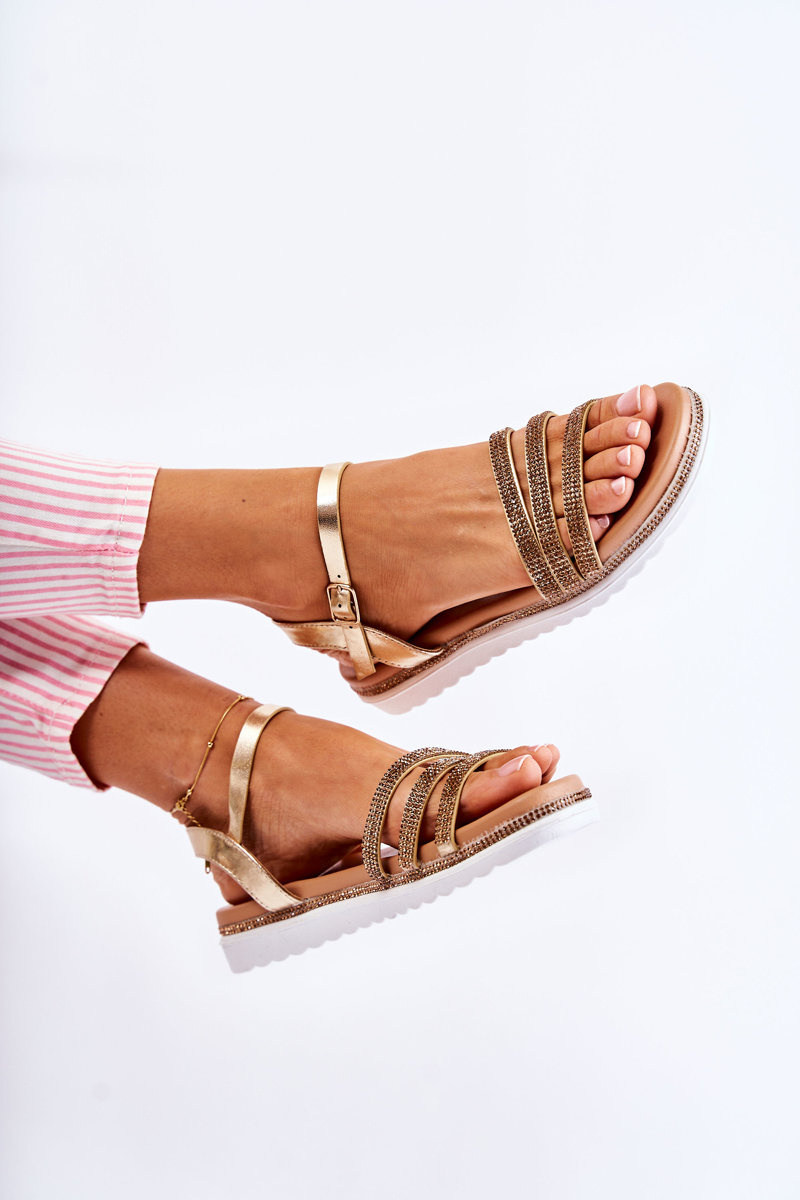 Damskie Sandały Z Cyrkoniami Złote Sorrita