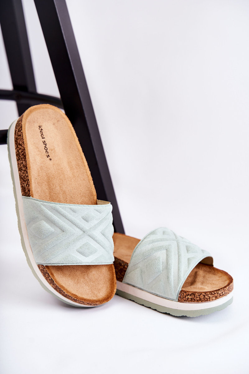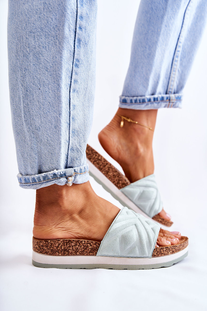 Damskie Zamszowe Klapki Na Masywnej Platformie Zielone Heritta
