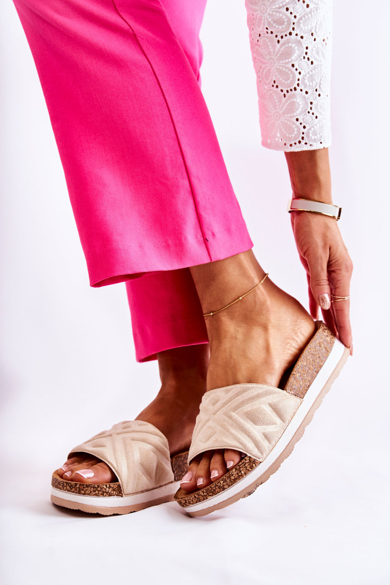 Damskie Zamszowe Klapki Na Masywnej Platformie Beżowe Heritta