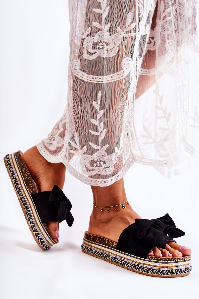 Damskie Klapki Na Masywnej Platformie Z Kokardą Czarne Macardi