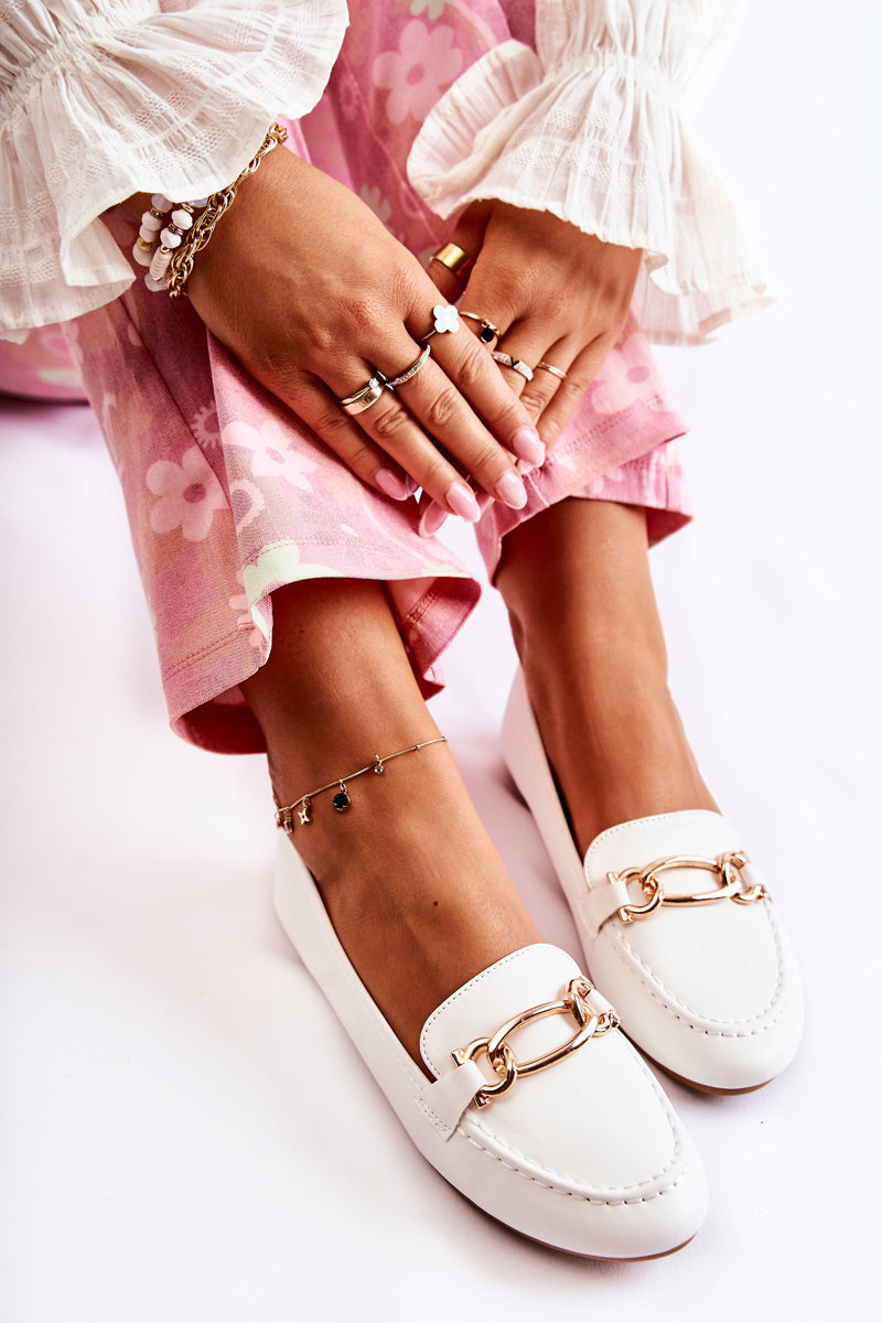 Skórzane Mokasyny Z Ozdobą Białe Millario