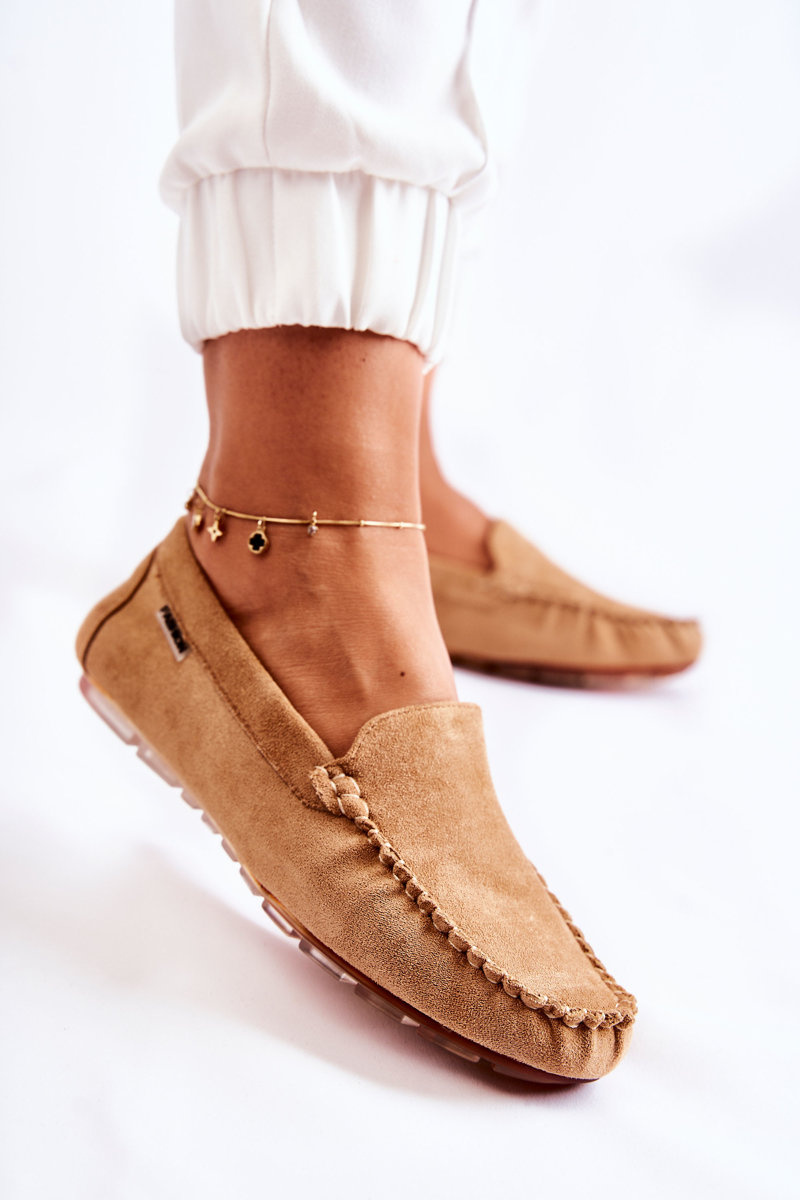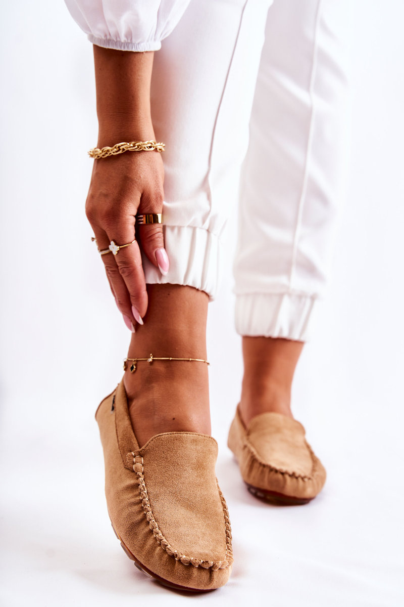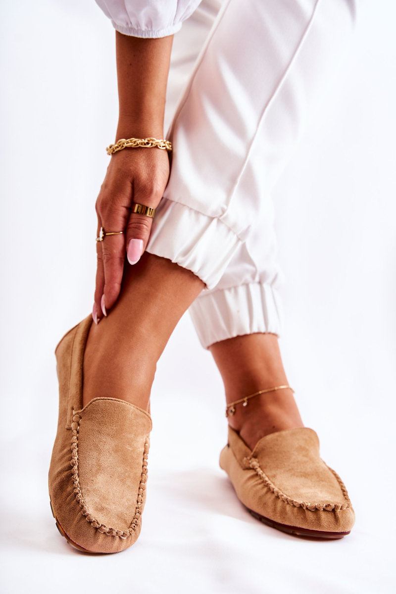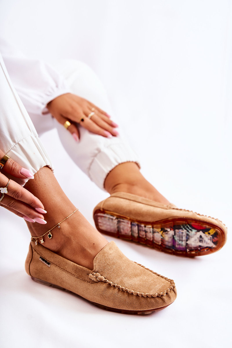 Zamszowe Mokasyny Damskie Ciemnobeżowe Millare