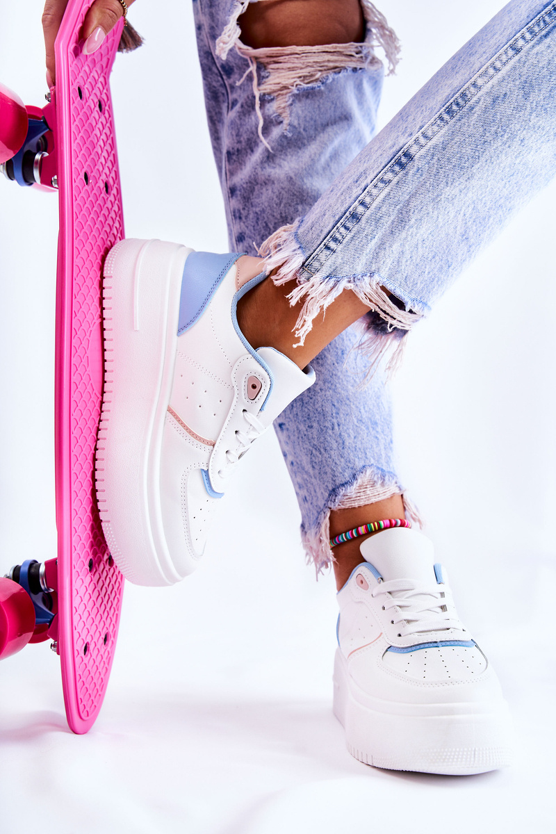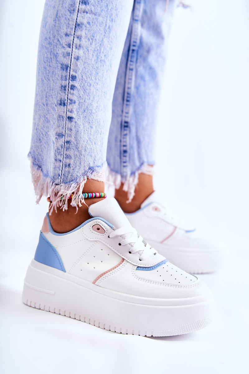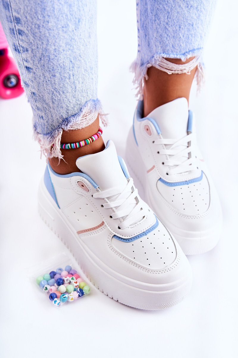 Damskie Wiązane Buty Sportowe Sneakersy Biało-Niebieskie Manila