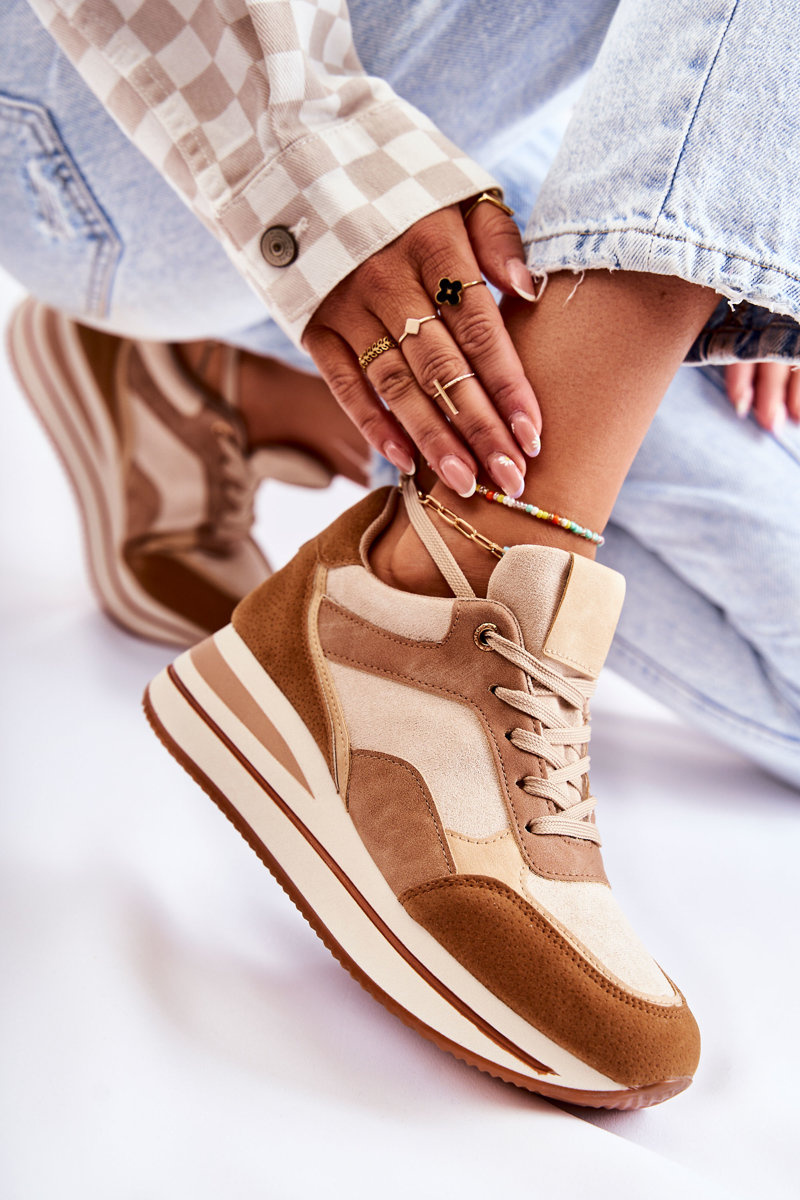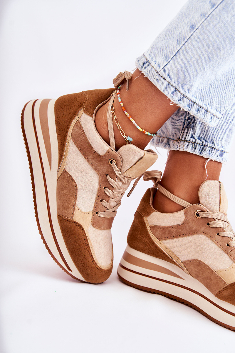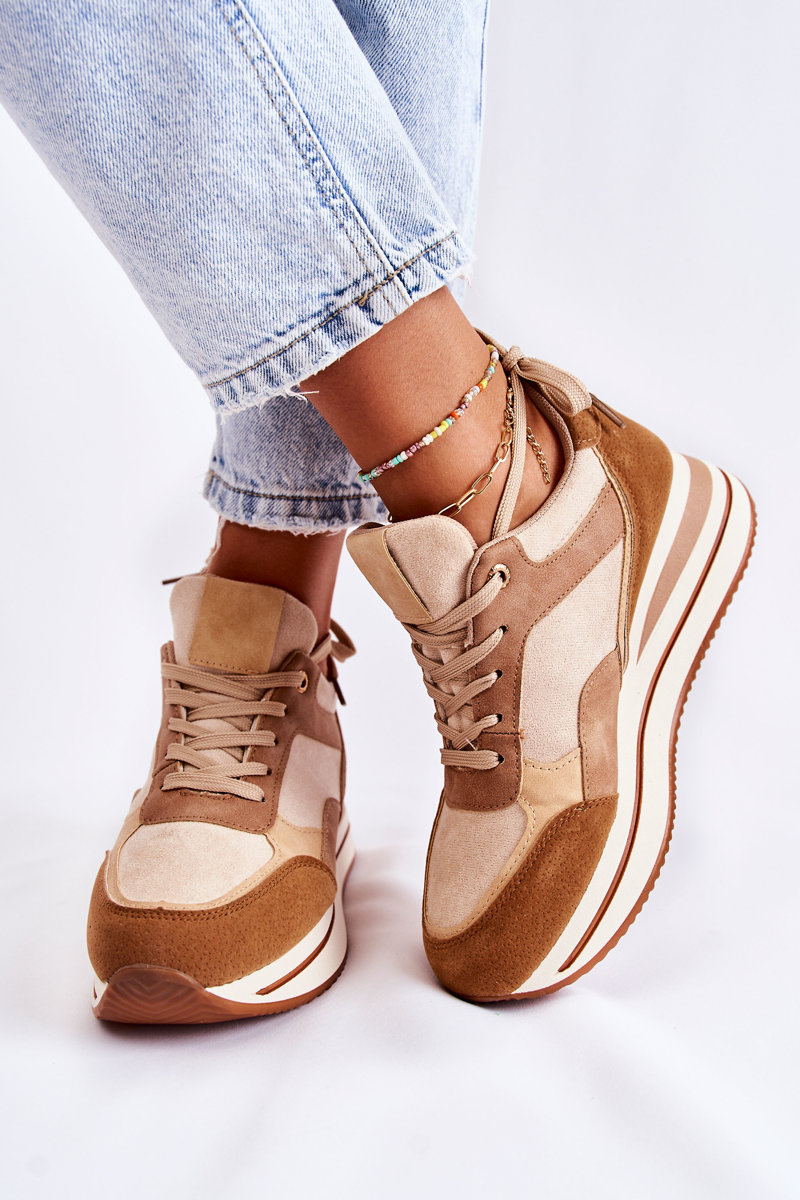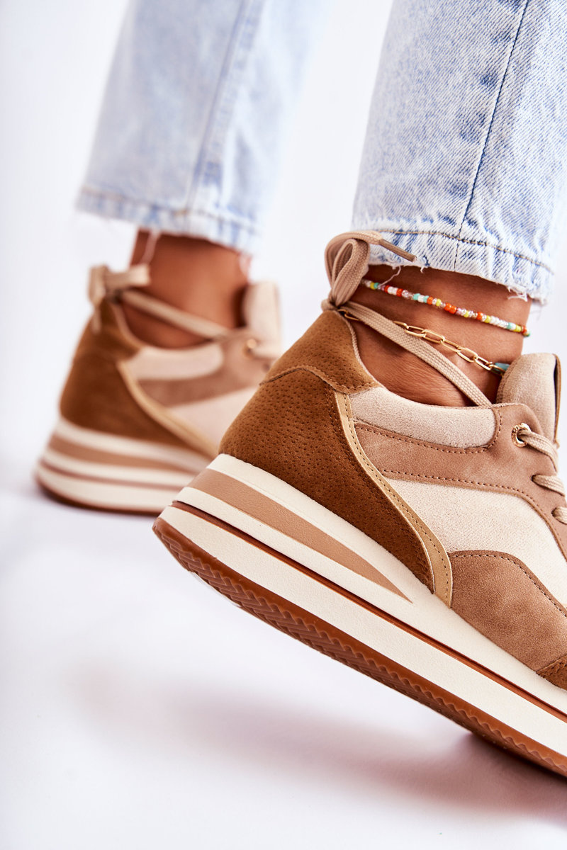 Damskie Zamszowe Buty Sportowe Brązowo-Beżowe Elisse
