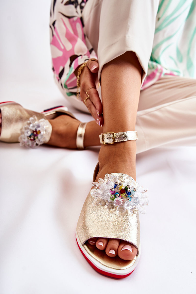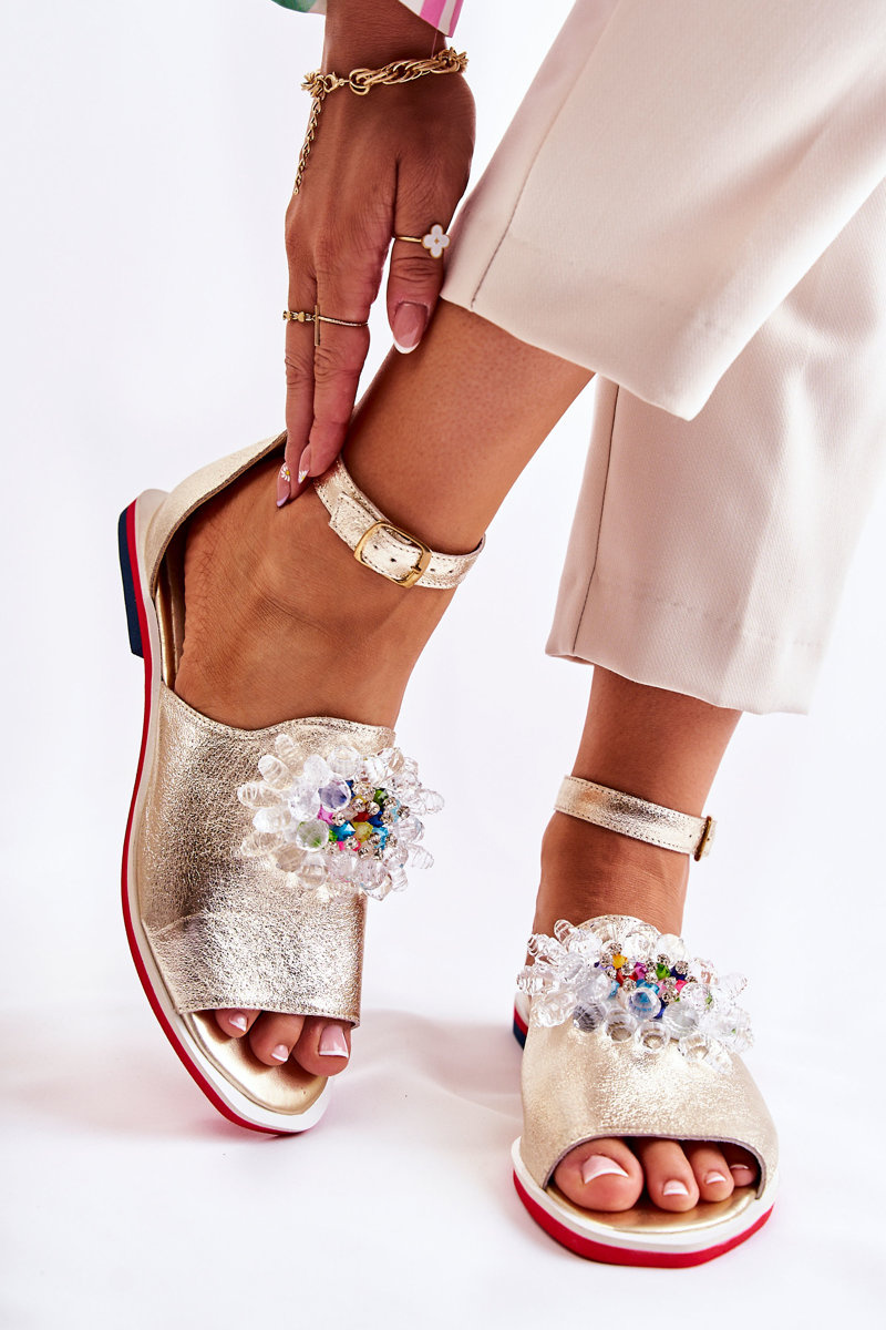 Damskie Skórzane Sandałki Z Ozdobą Złote Nevassa