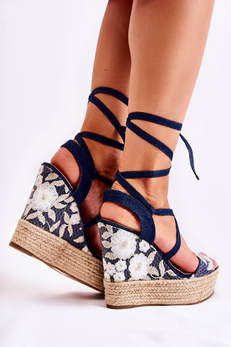 Modne Wiązane Sandały Na Koturnie Granatowe Recife