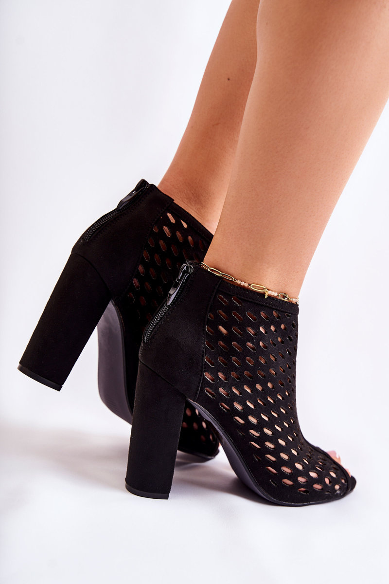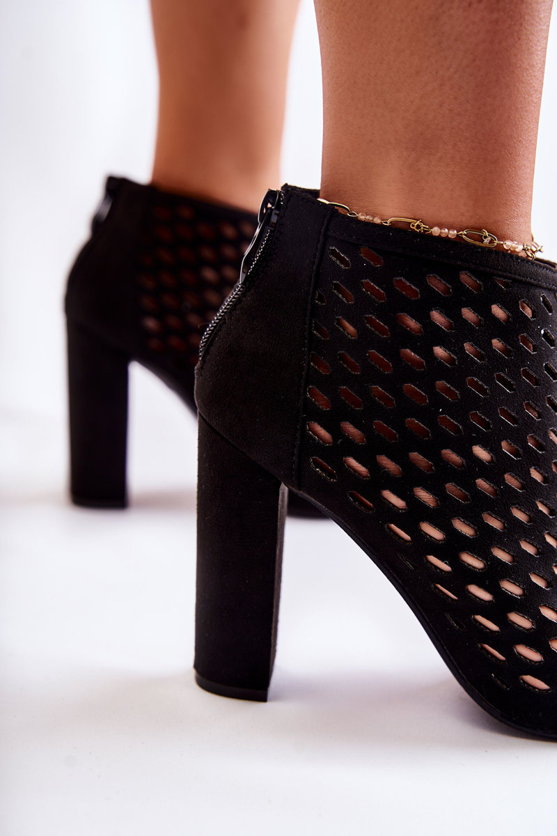 Zamszowe Ażurowe Botki Czarne Jenissa