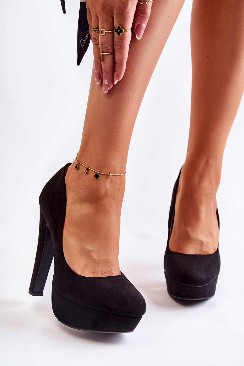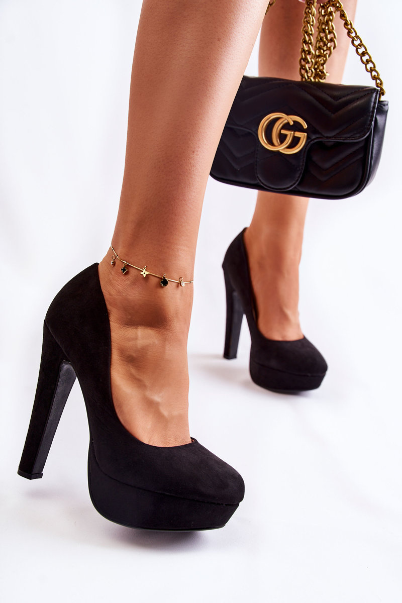 Zamszowe Czółenka Na Wysokim Obcasie Czarne Santene