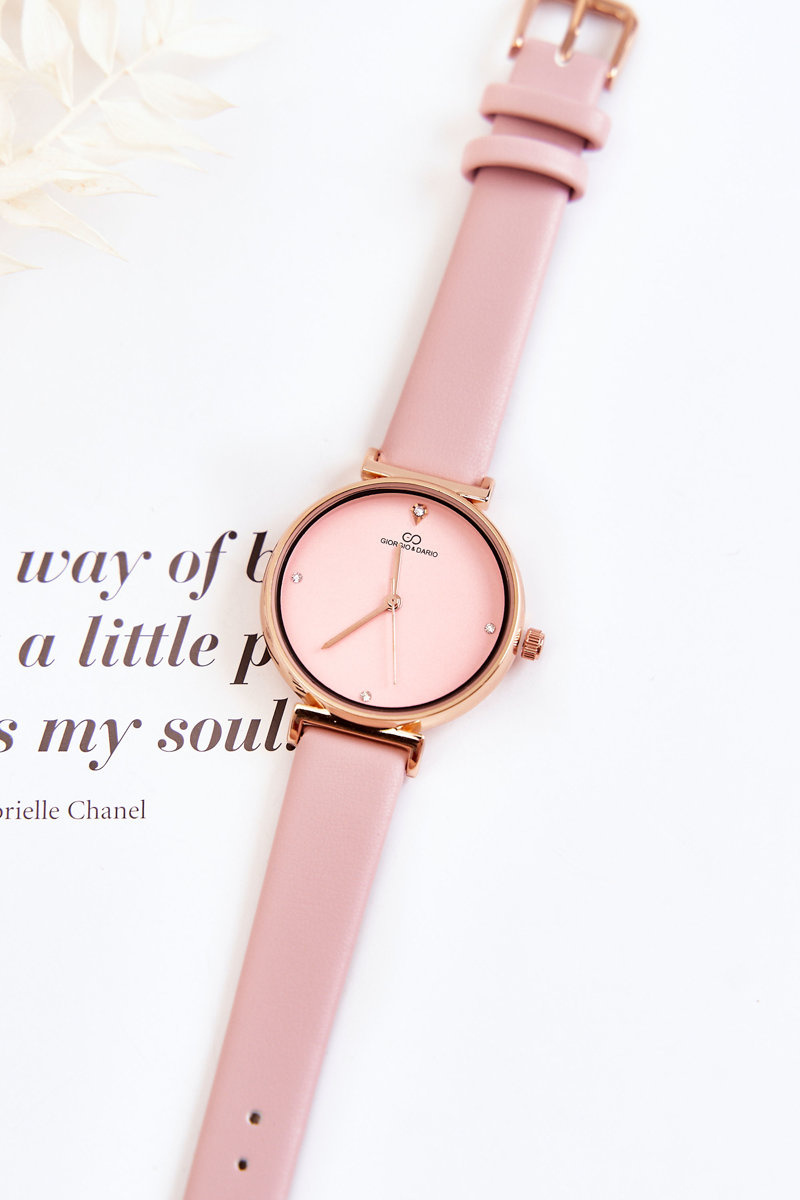 Damski Klasyczny Zegarek Na Skórzanym Pasku Giorgio&Dario Różowy