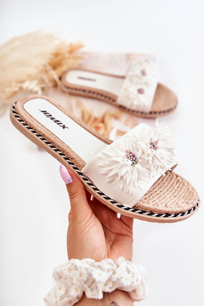 Damskie Klapki Z Materiałowymi Kwiatami Białe Susana
