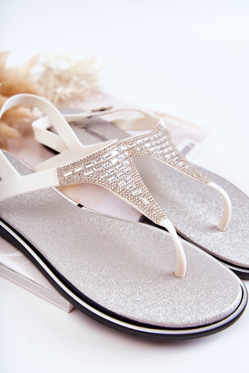 Damskie Sandały Japonki Z Ozdobami Białe Atlanta
