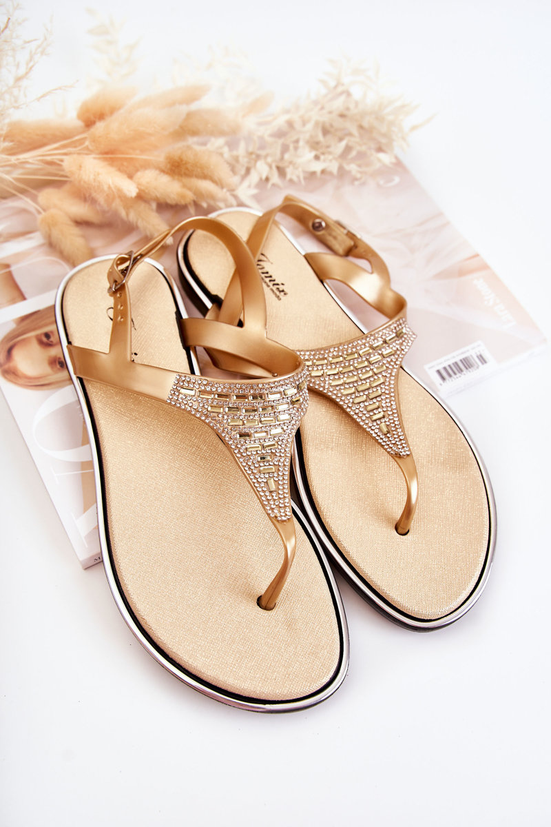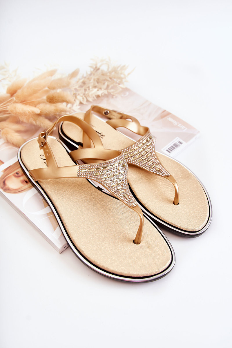 Damskie Sandały Japonki Z Ozdobami Złote Atlanta