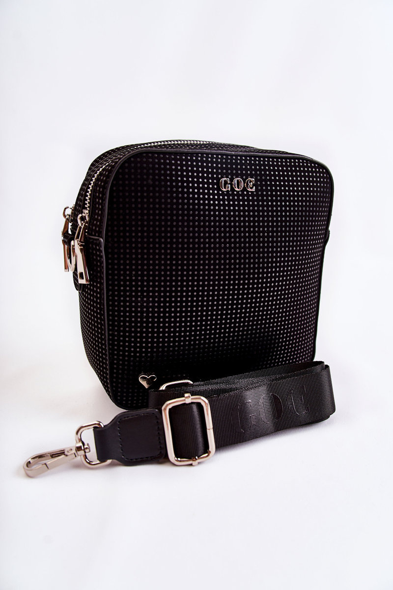 Ta listonoszka od marki GOE zachwyca swoim designem! Została wykonana z wysokiej jakości materiału. Posiada na przodzie logo marki GOE oraz ozdobny element w kształcie serca. Komory zamykane na zamek błyskawiczny. W jednej z nich znajduje się otwarta kieszonka, natomiast w drugiej kieszonka zamykana na suwak. Podszewka wykonana z tkaniny w ozdobny wzór. Dodatkowo z tyłu torebki znajduje się kolejna kieszonka zamykana na suwak. Listonoszka ta posiada jeden regulowany, odpinany pasek.
