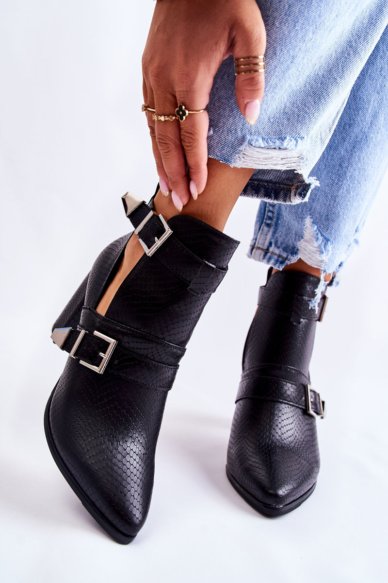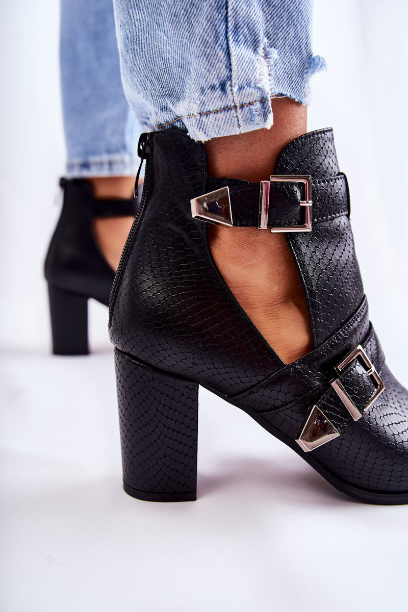 Modne Botki Na Słupku Z Wycięciami Czarne Suelo