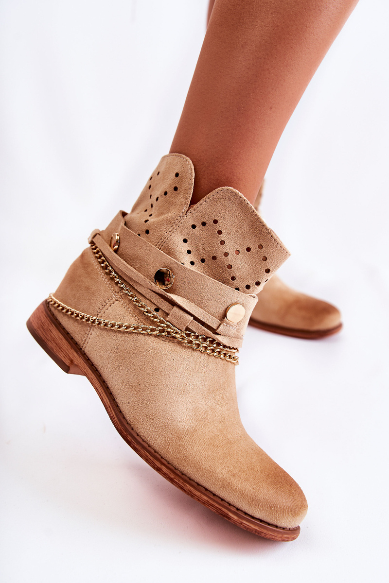 Zamszowe Botki Na Ukrytym Koturnie Beżowe Verine