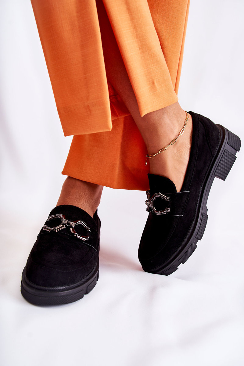 Zamszowe Półbuty Loafery Z Ozdobą Czarne Janissa
