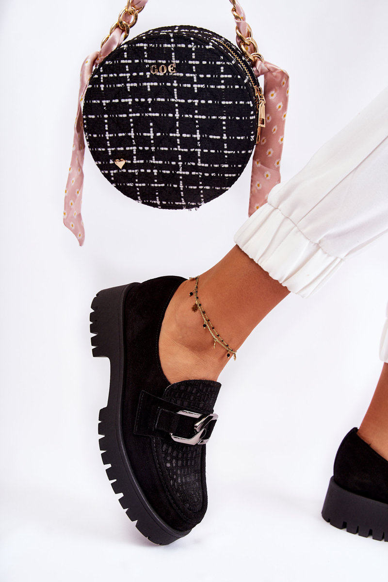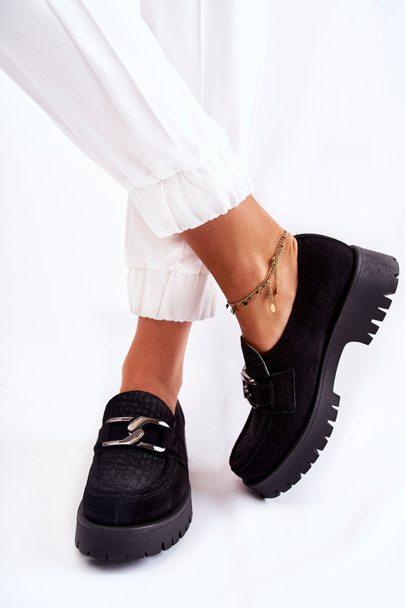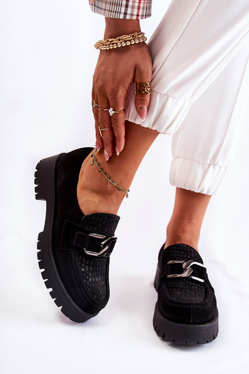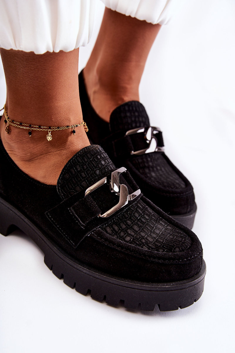 Modne Zamszowe Półbuty Loafery Czarne Lemar Rayhan