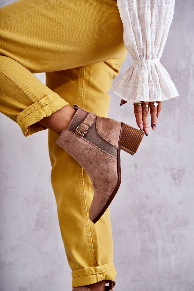 Zamszowe Botki Na Słupku Brązowe Vannes