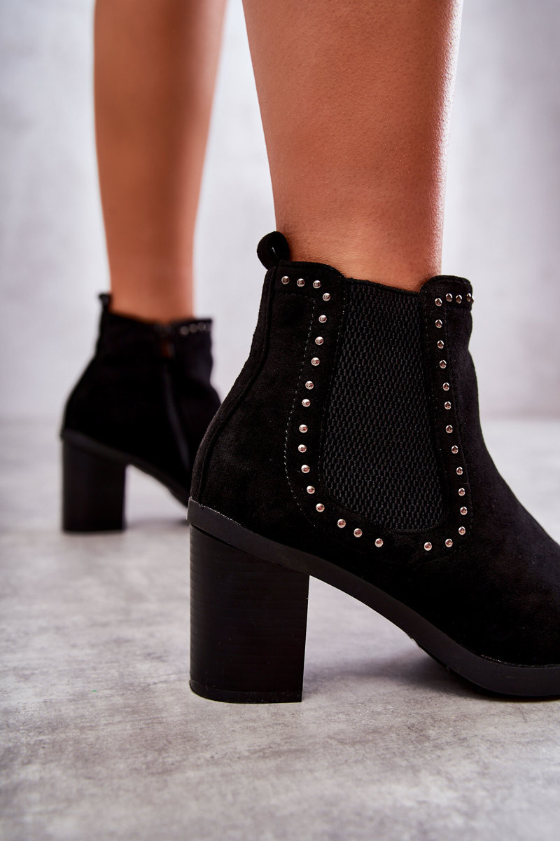 Zamszowe Botki Z Ćwiekami Na Słupku Czarne Cambia