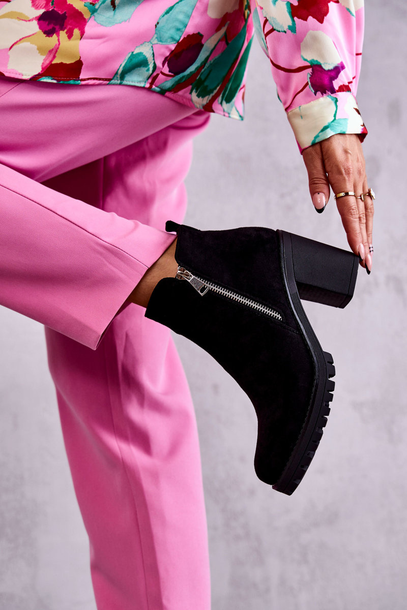 Zamszowe Botki Na Obcasie Z Suwakiem Czarne Sevione