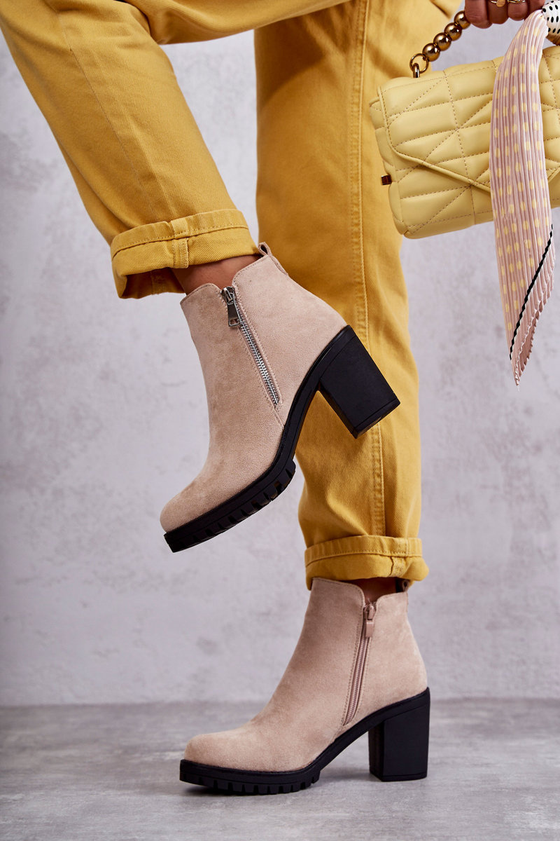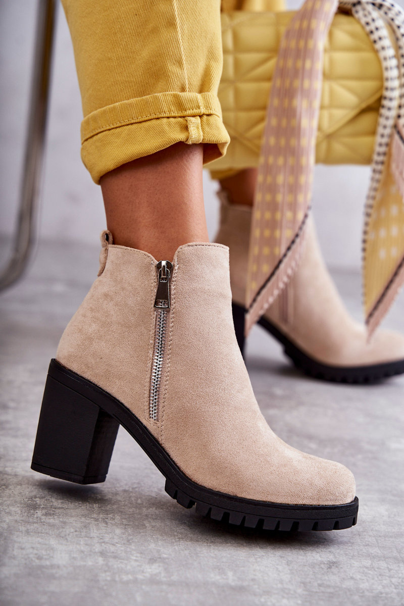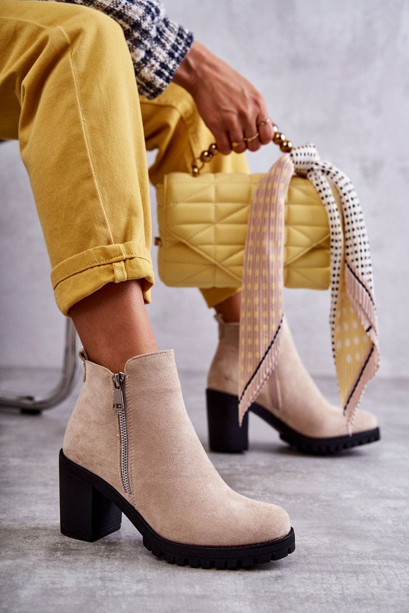 Zamszowe Botki Na Obcasie Z Suwakiem Jasnobeżowe Sevione