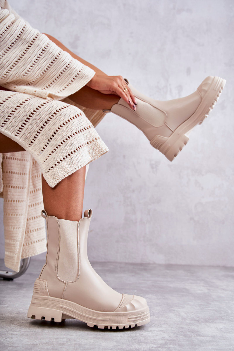 Klasyczne Wysokie Workery Botki Beżowe Bassti