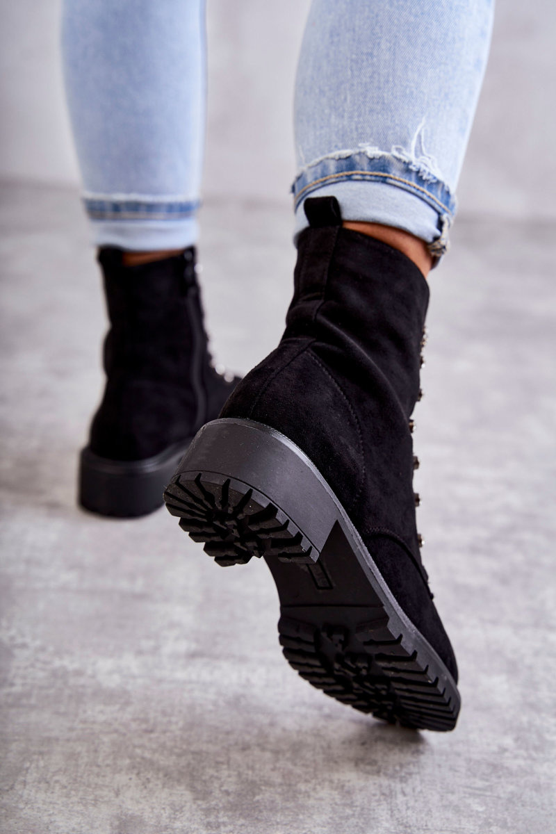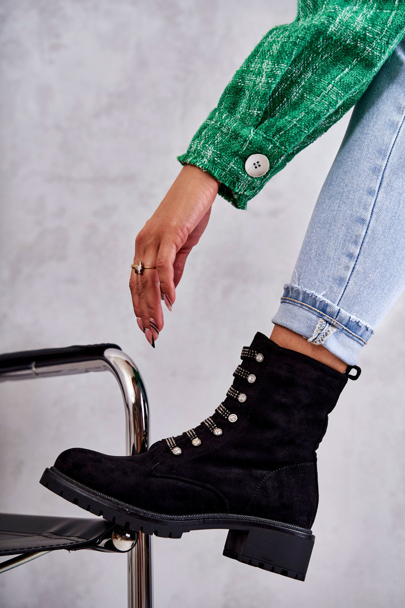 Zamszowe Botki Z Ozdobnymi Paskami Czarne Malesia