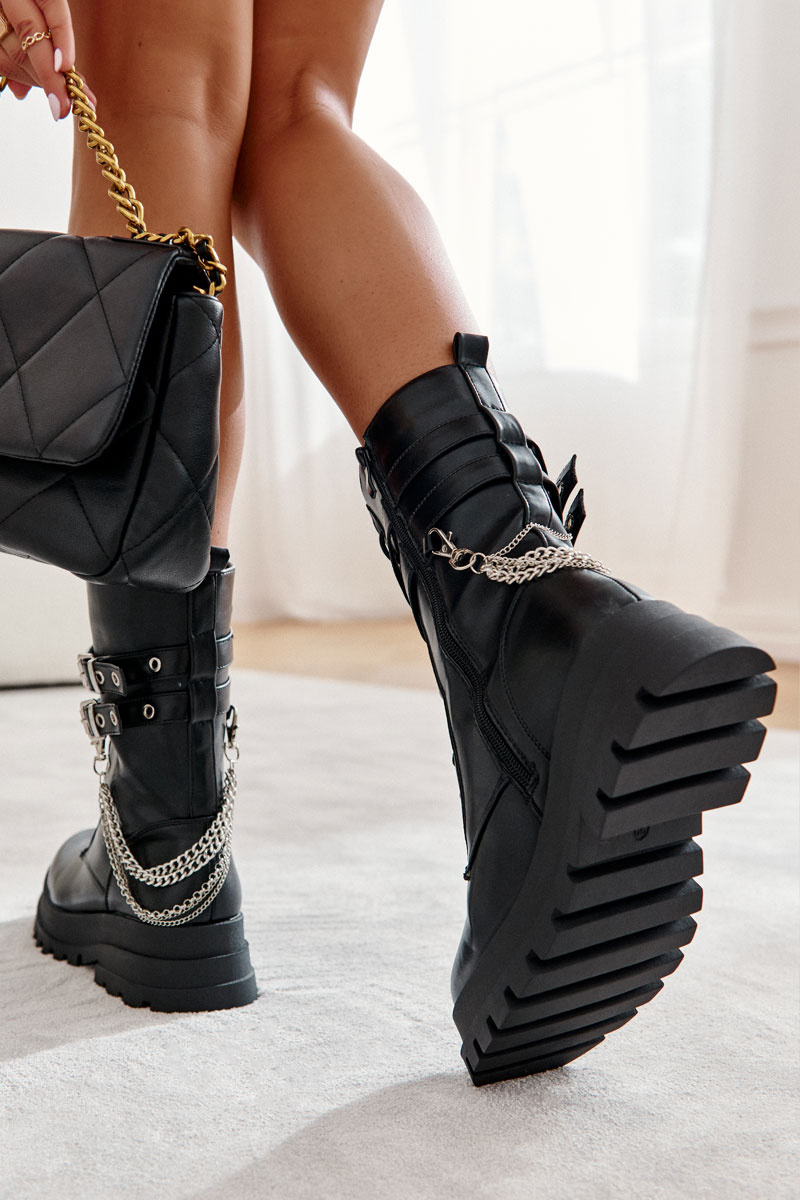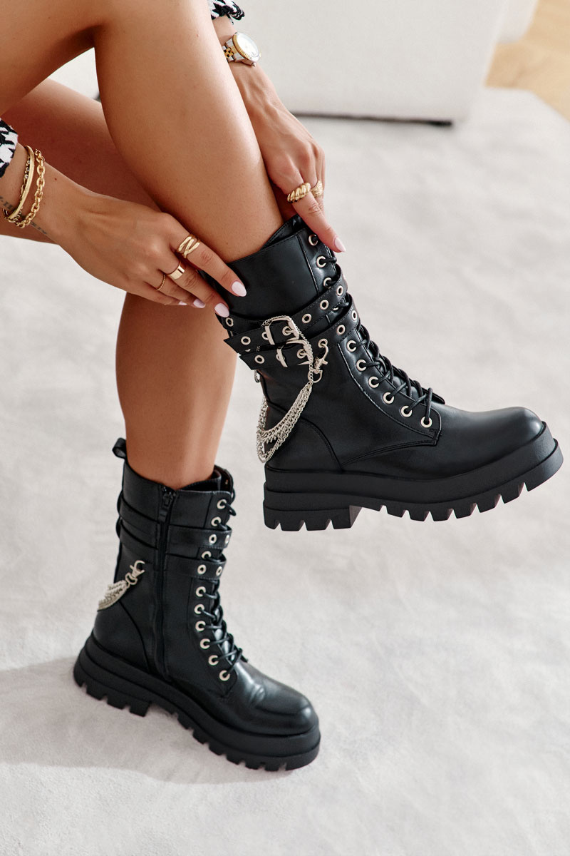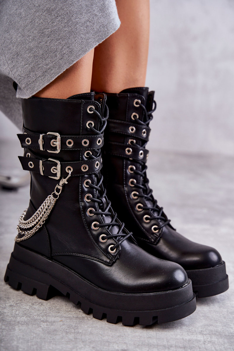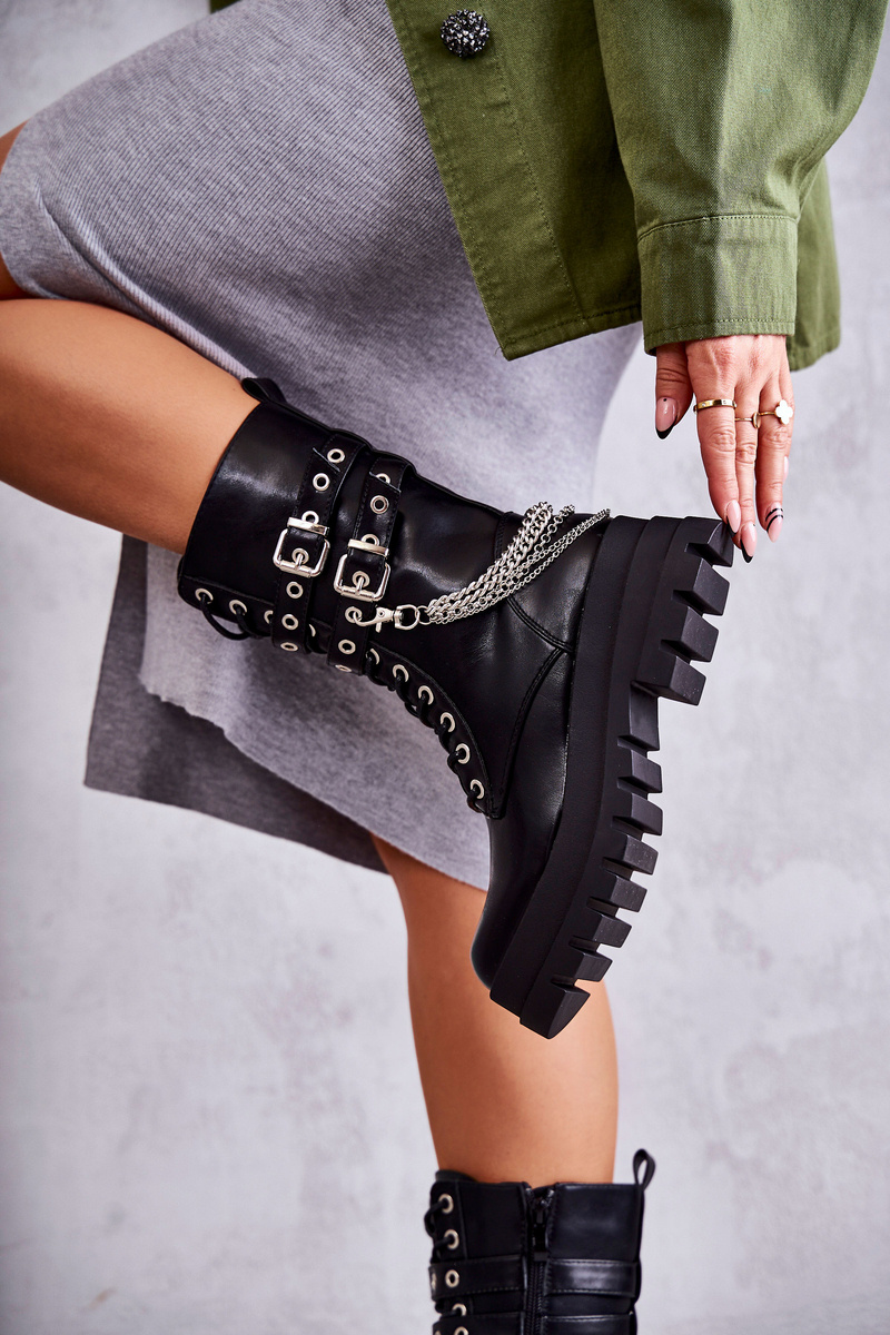 Wysokie Workery Botki Z Łańcuchem Czarne Montero