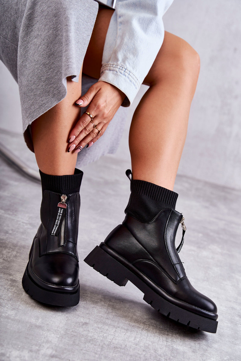 Damskie Botki Skarpetkowe Na Suwak Czarne Shelter