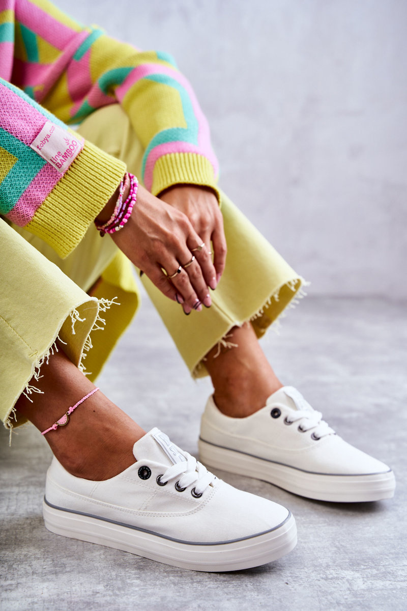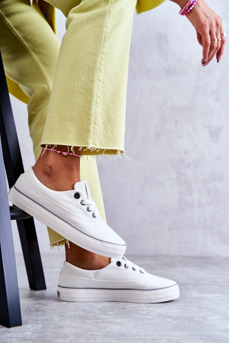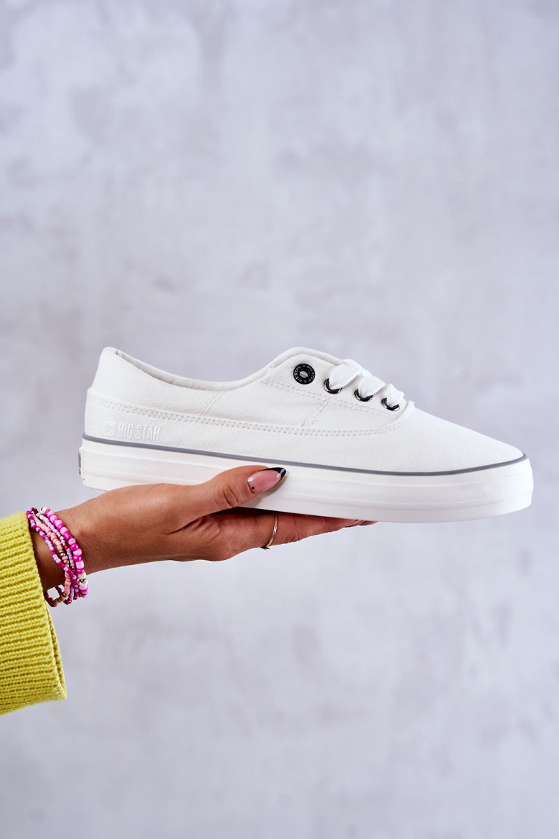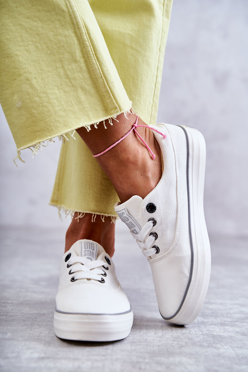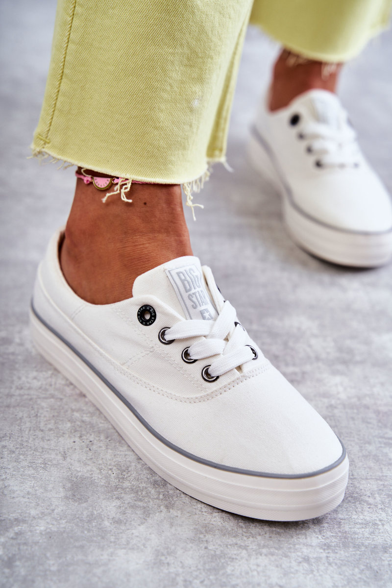 Materiałowe Damskie Tenisówki Big Star KK274017 Białe