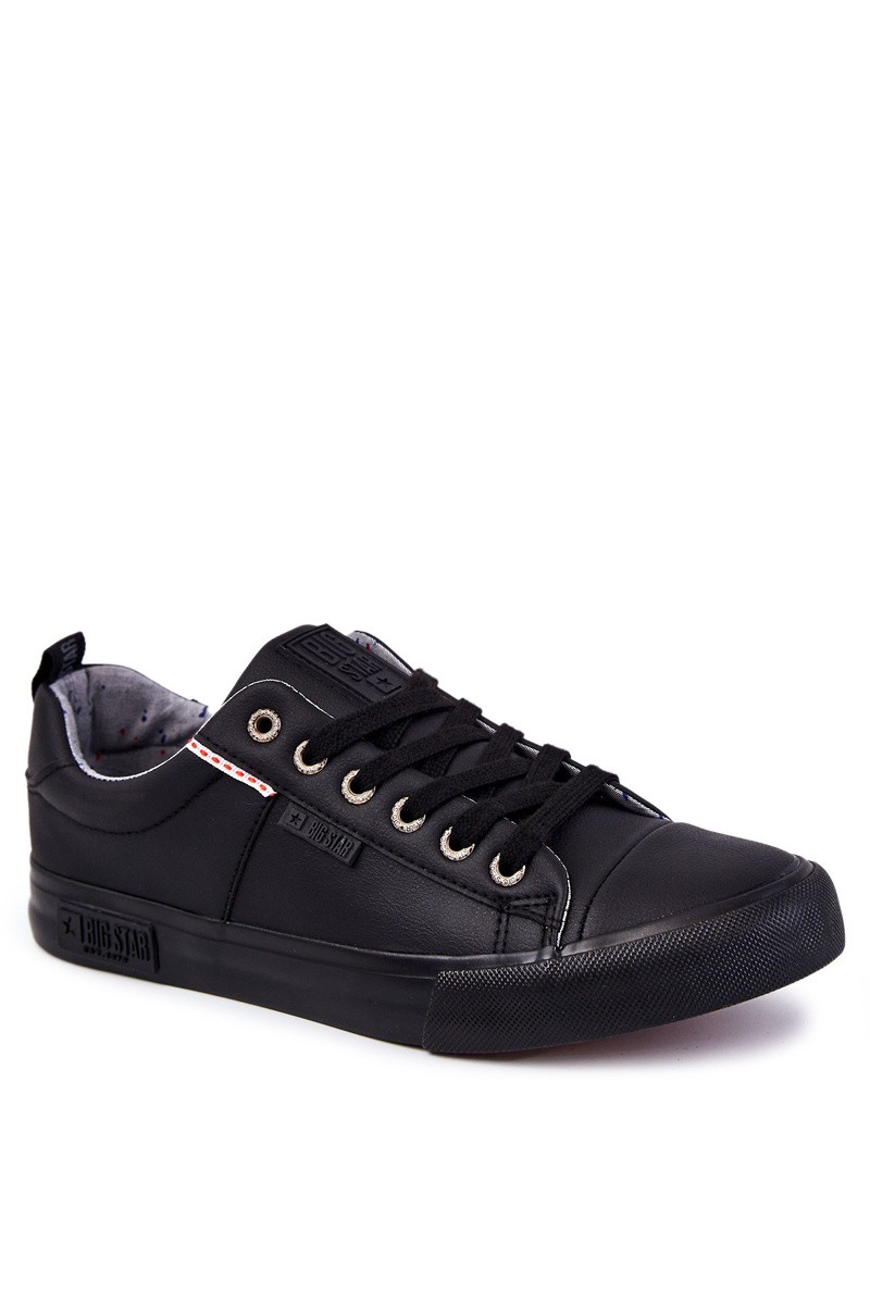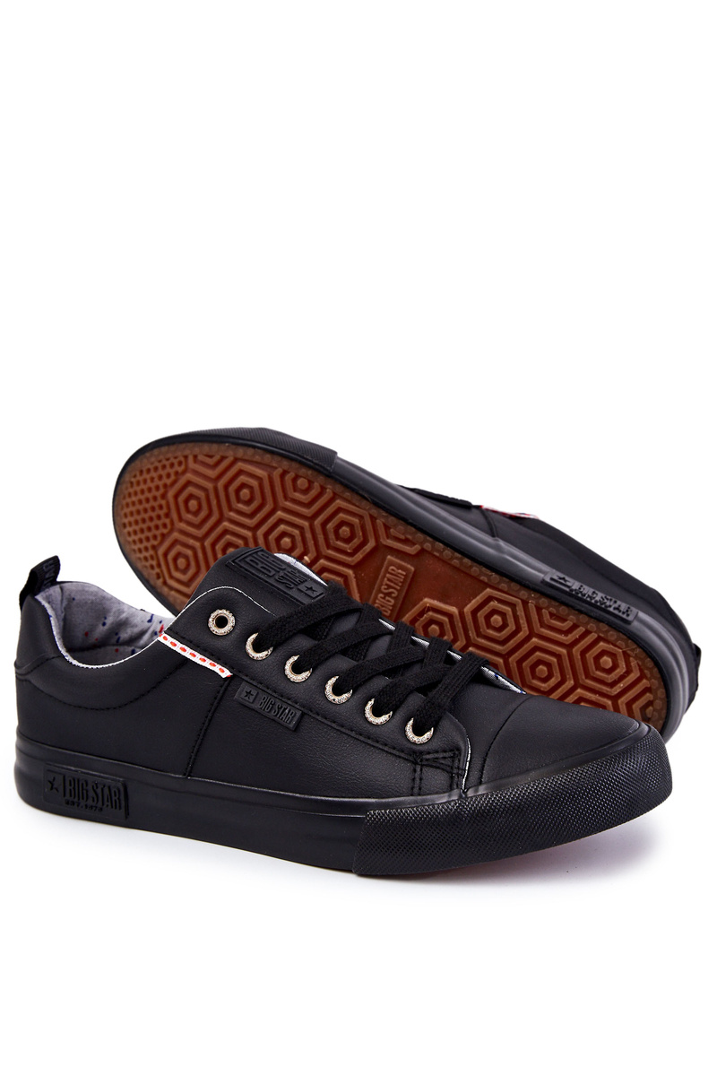 Klasyczne męskie tenisówki posiadają niską cholewkę do kostki. Zostały wykonane z eko skóry. Wyściółka w ciekawy wzór. Model klasycznie sznurowany. Platforma wraz z podeszwą zostały wykonane z gumowego tworzywa, co sprawia, że te trampki są antypoślizgowe. Dodatkowo buty posiadają bootstrapa, czyli pętelkę ułatwiającą zakładanie i ściąganie obuwia. Przy wyborze rozmiaru prosimy sugerować się tabelą rozmiarów.