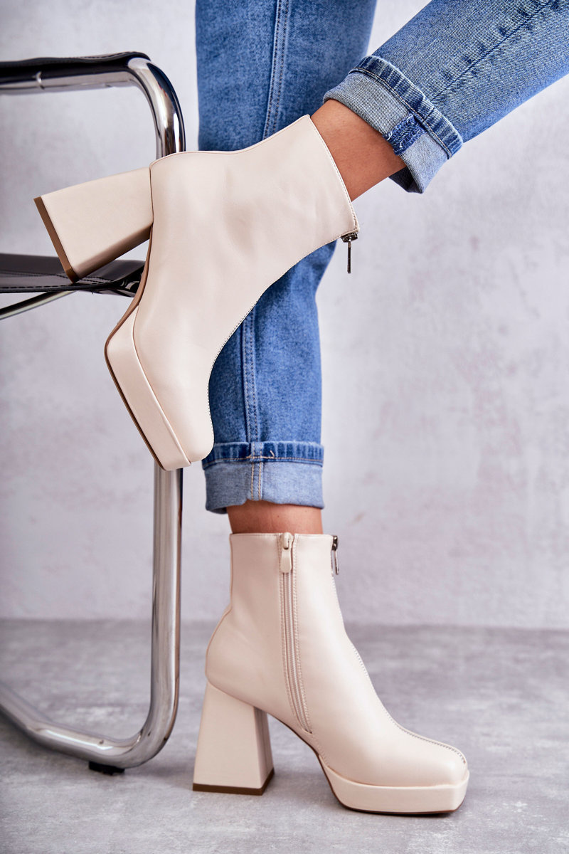 Damskie Botki Na Masywnym Obcasie Z Suwakiem Beżowe Carrera