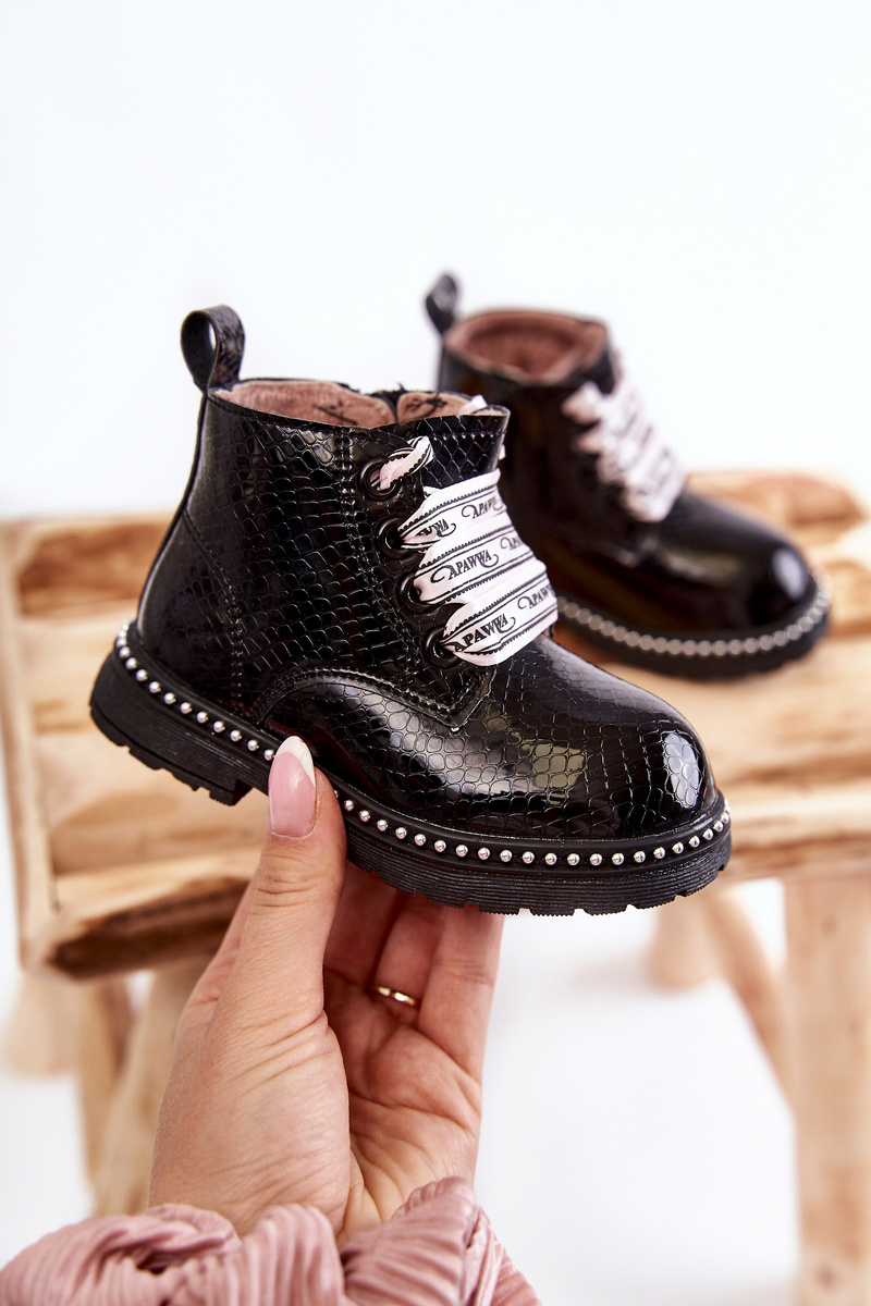 Dziecięce Ocieplane Skórzane Botki Czarne Dottie
