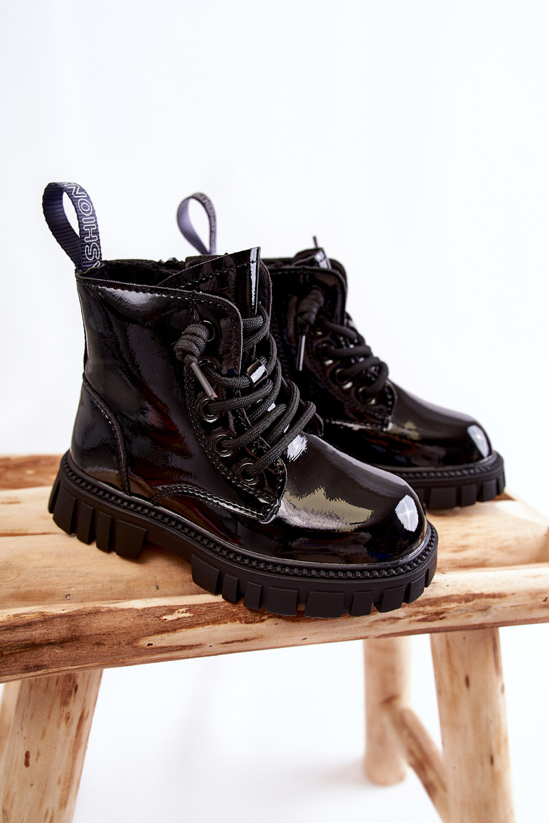 Śliczne botki w stylu traperów to idealne obuwie na chłodniejsze dni! Cholewka zapinana na suwak z dodatkowym sznurowaniem z przodu. Zapiętek oraz nosek są usztywniane. W środku botki są ocieplane miłym w dotyku kocem obuwniczym. Osadzone na płaskim obcasie z bieżnikiem. Model ten posiada bootstrapa, czyli pętelkę ułatwiającą zakładanie i ściąganie obuwia. Przy wyborze rozmiaru prosimy kierować tabelą rozmiarów.