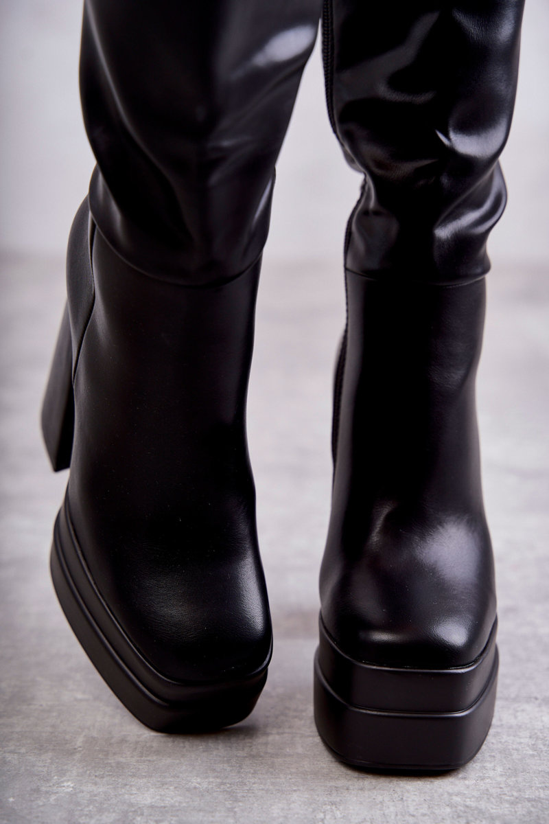 Modne Skórzane Kozaki Na Masywnym Obcasie Czarne Meggie