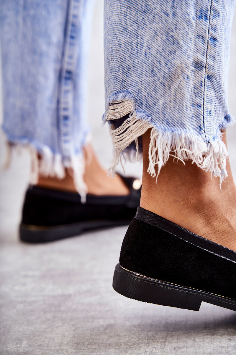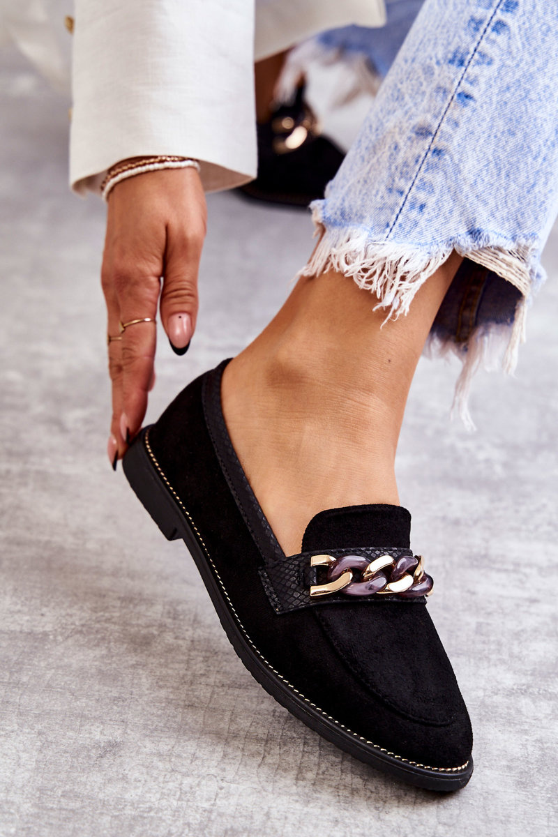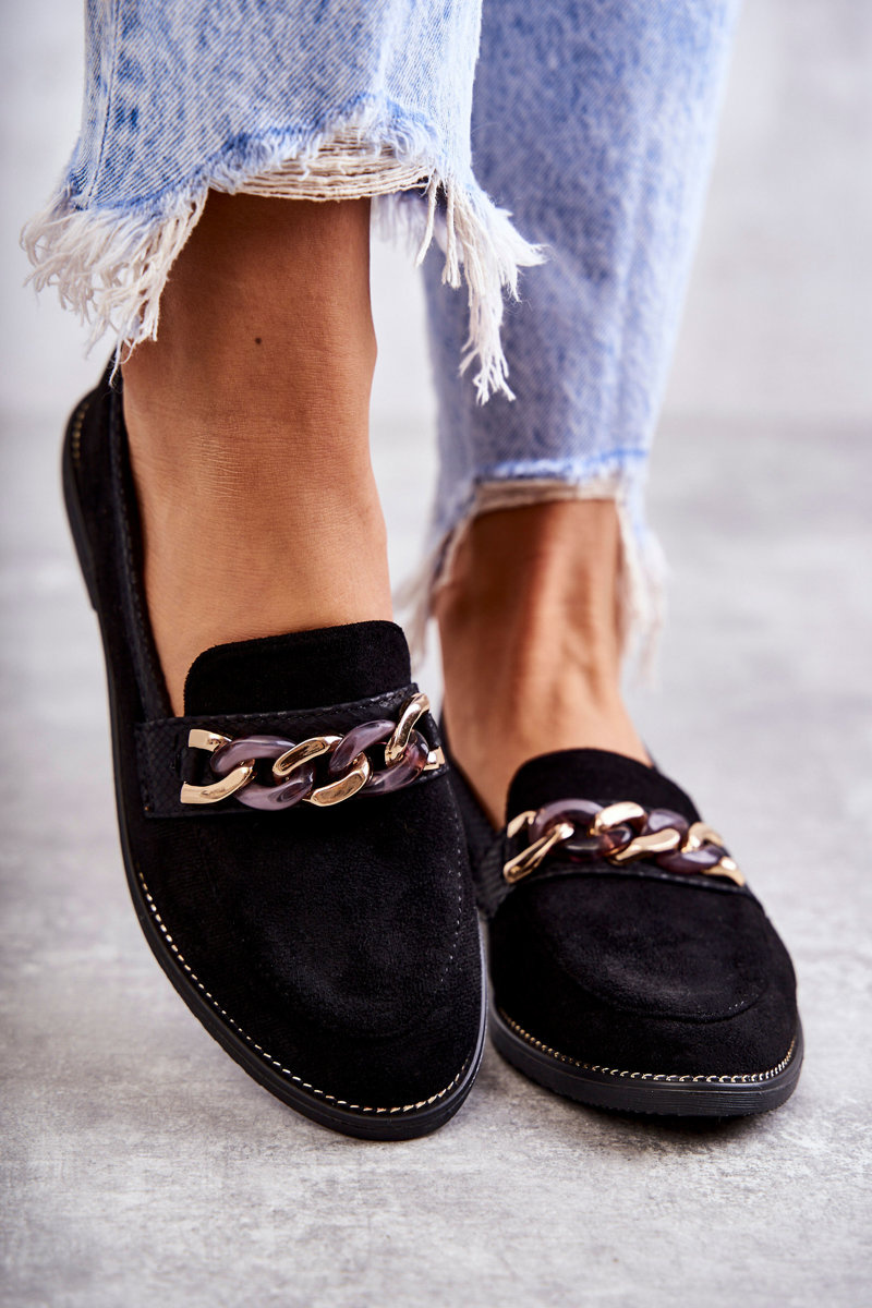 Damskie Zamszowe Mokasyny Z Łańcuszkiem Czarne Nolie