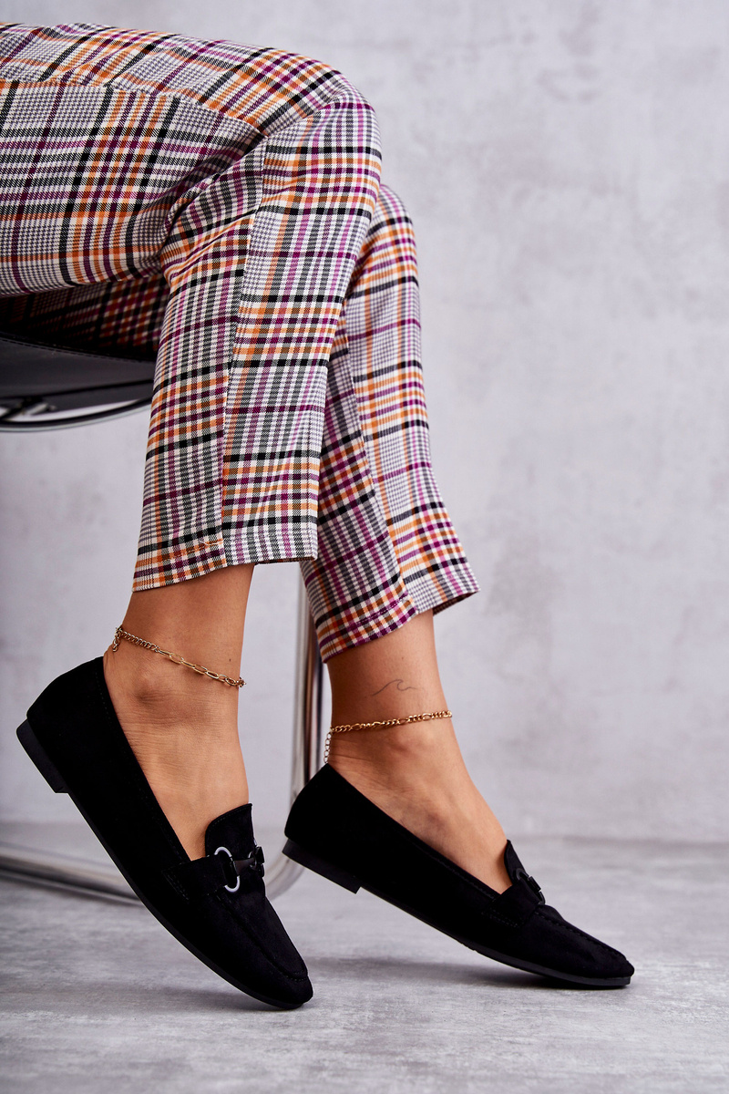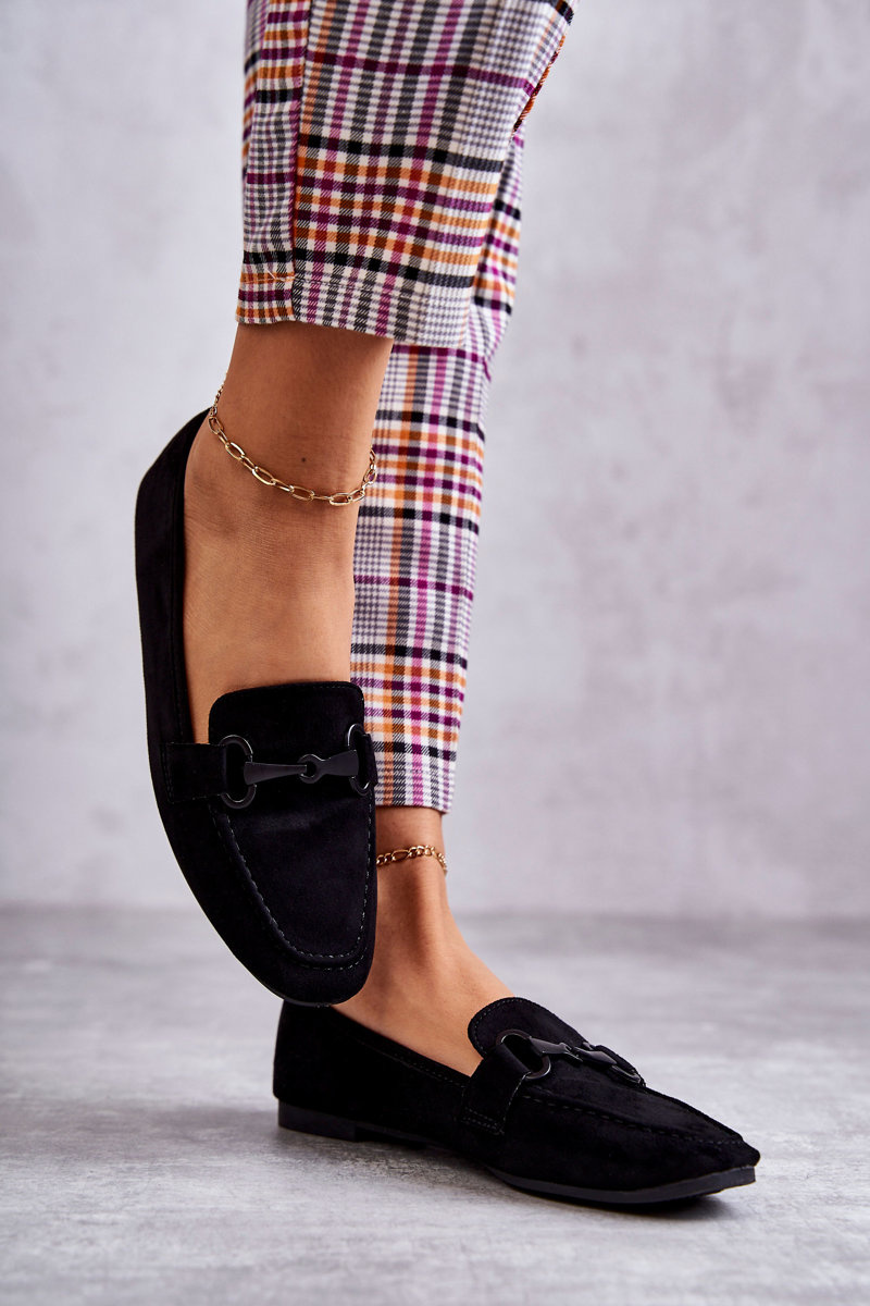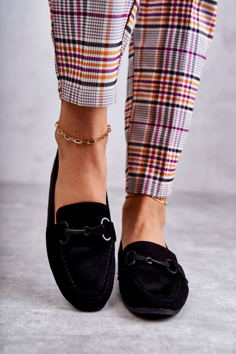 Zamszowe Mokasyny Z Ozdobą Czarne Santi