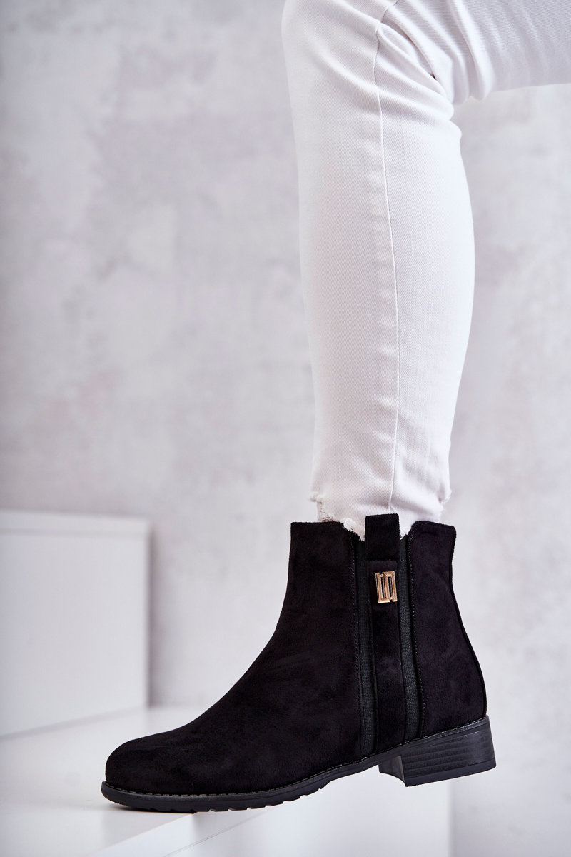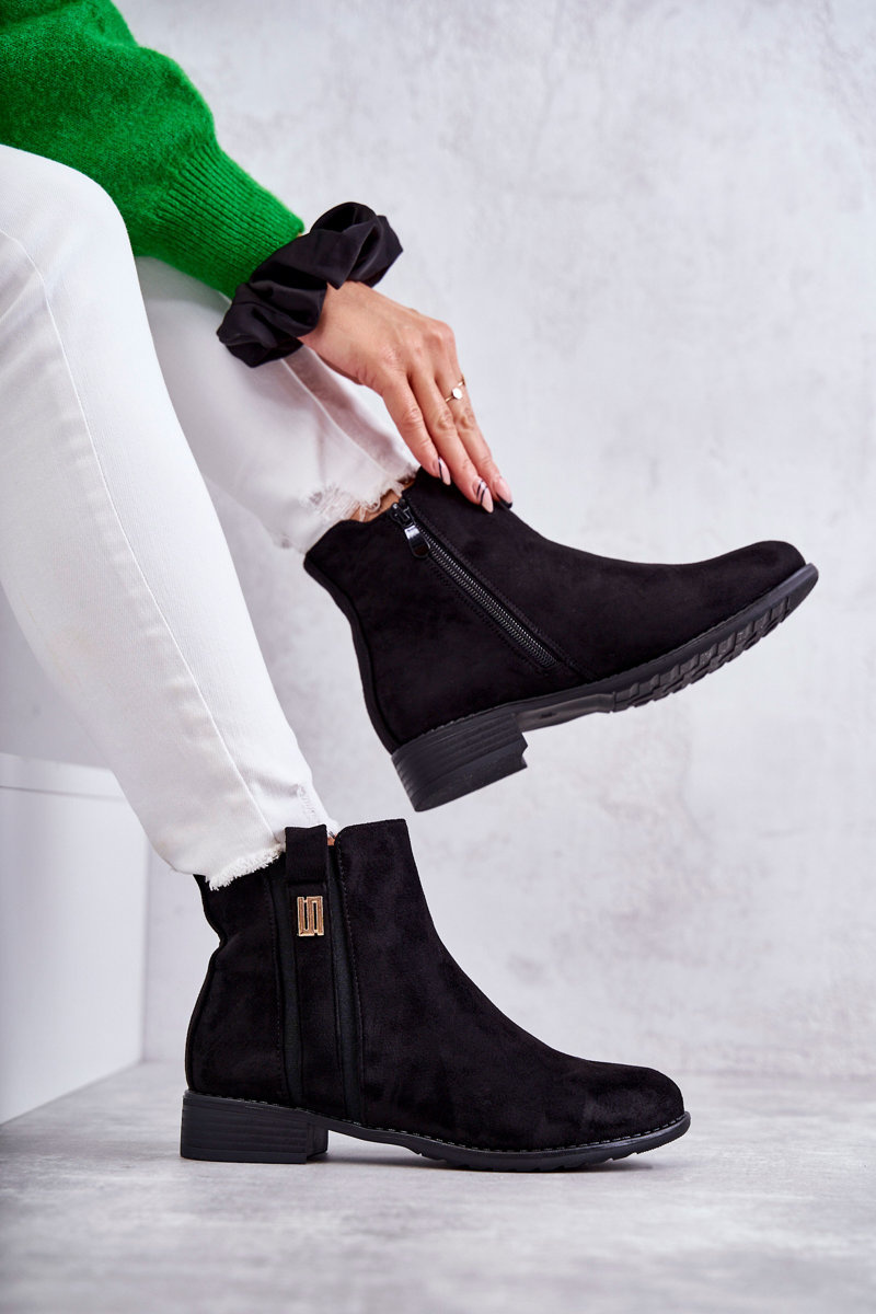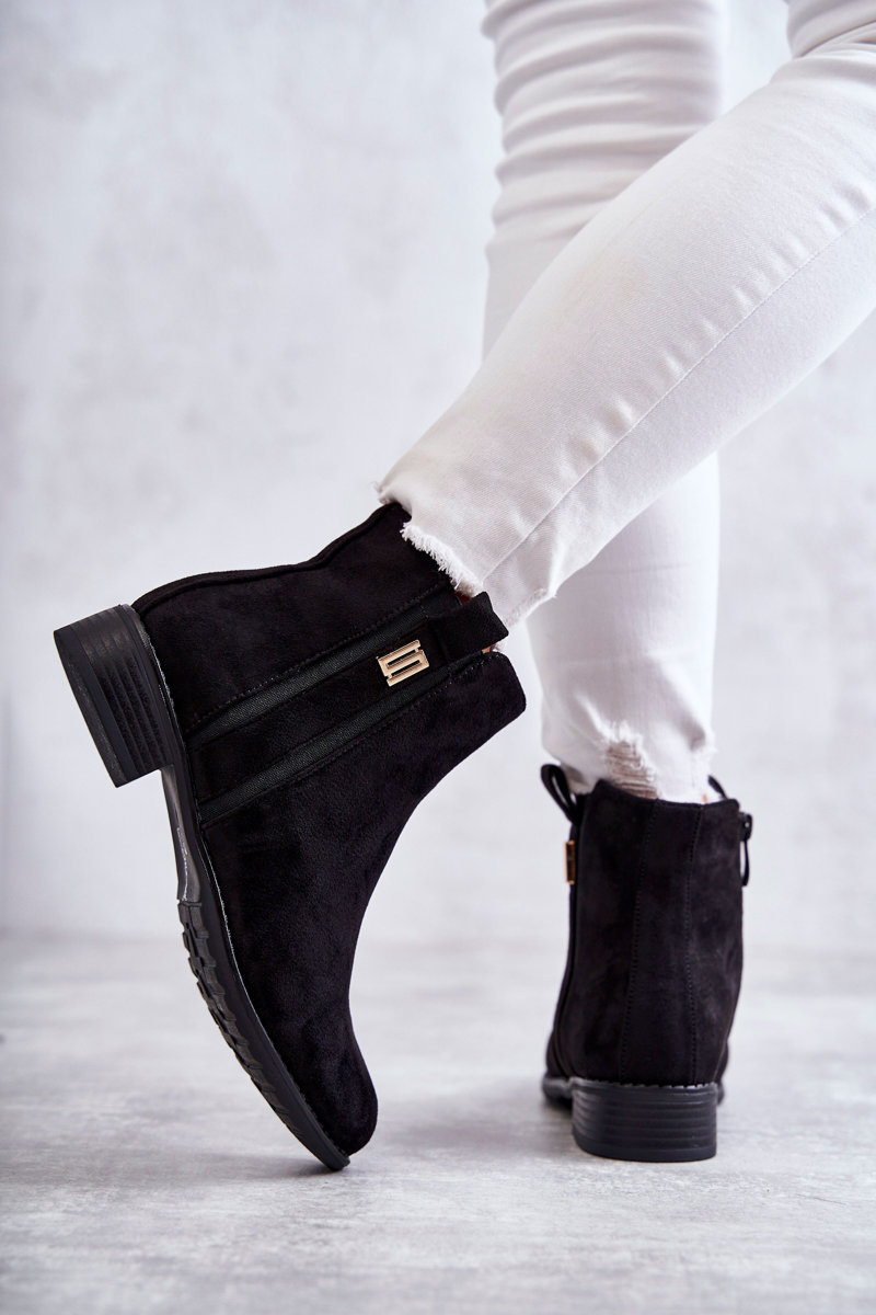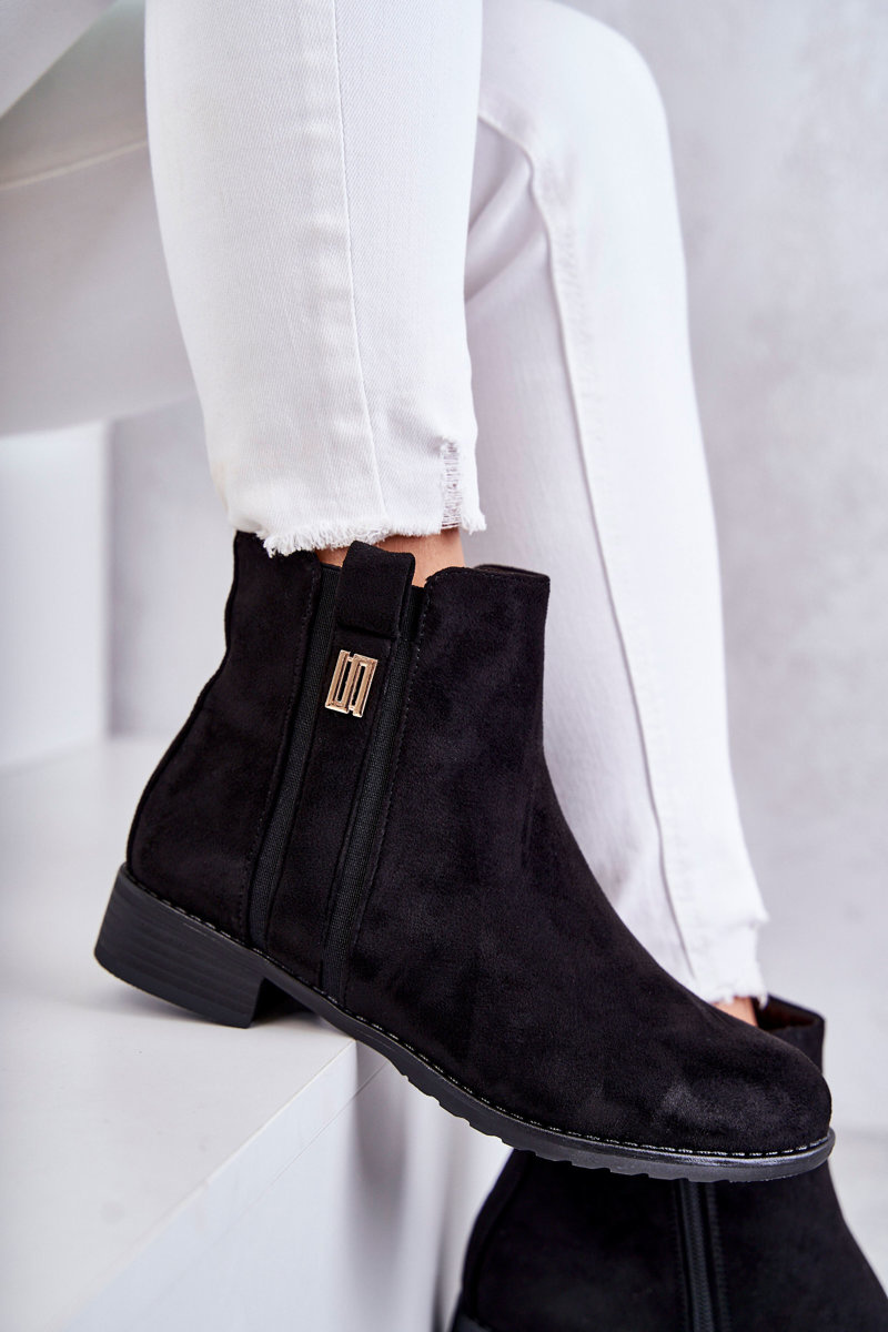Damskie Zamszowe Botki Z Ozdobą Czarne Giana