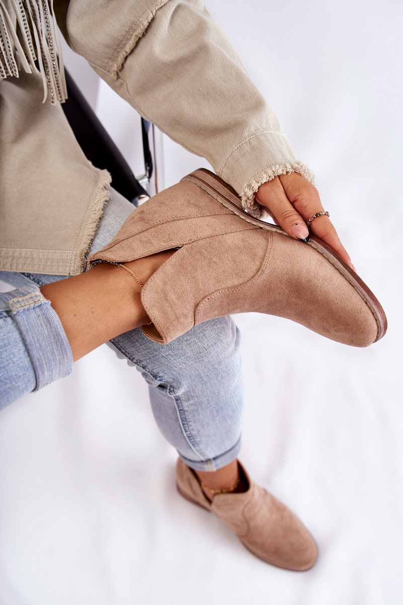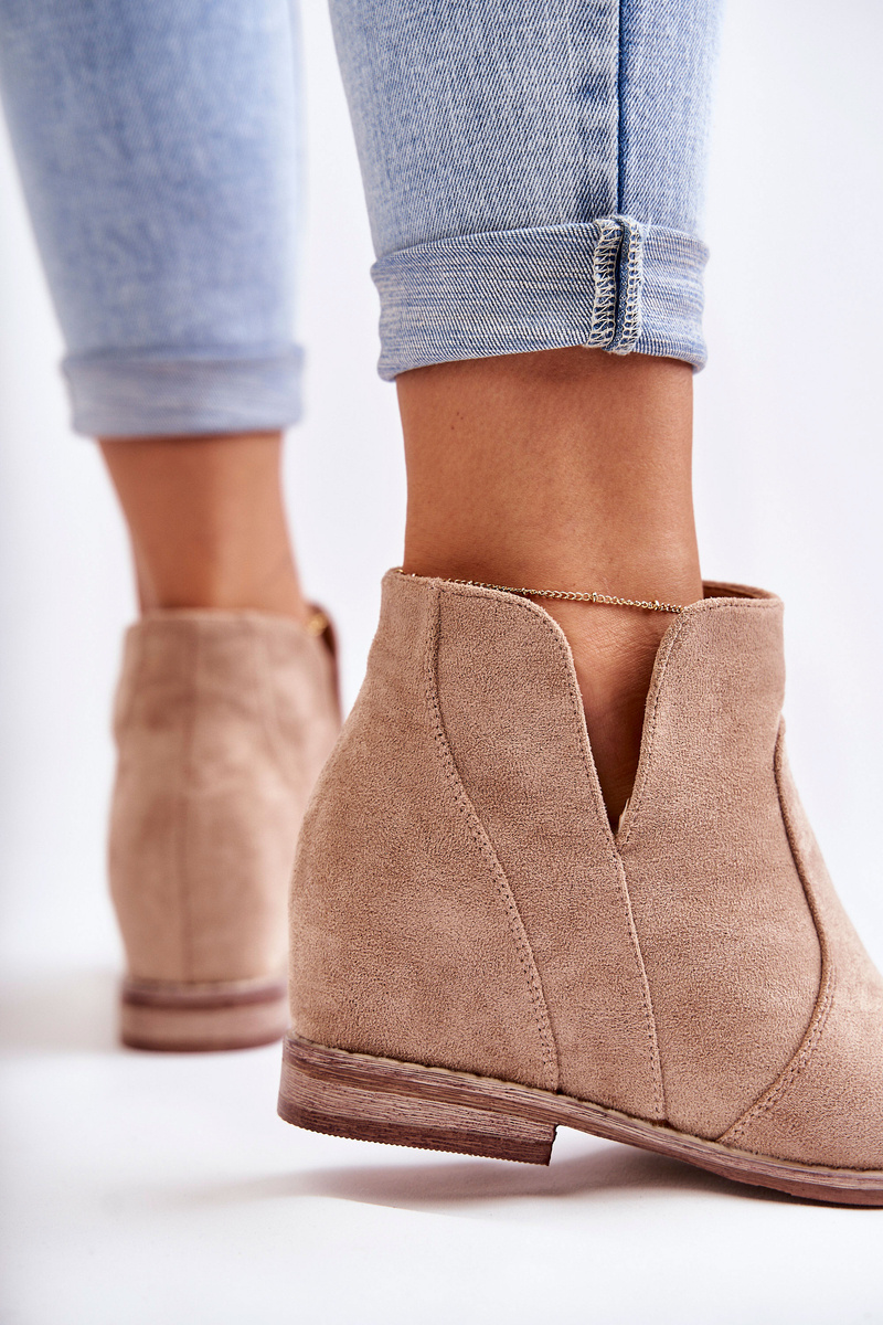 Zamszowe Botki Z Wycięciami Na Płaskim Obcasie Beżowe Henriette